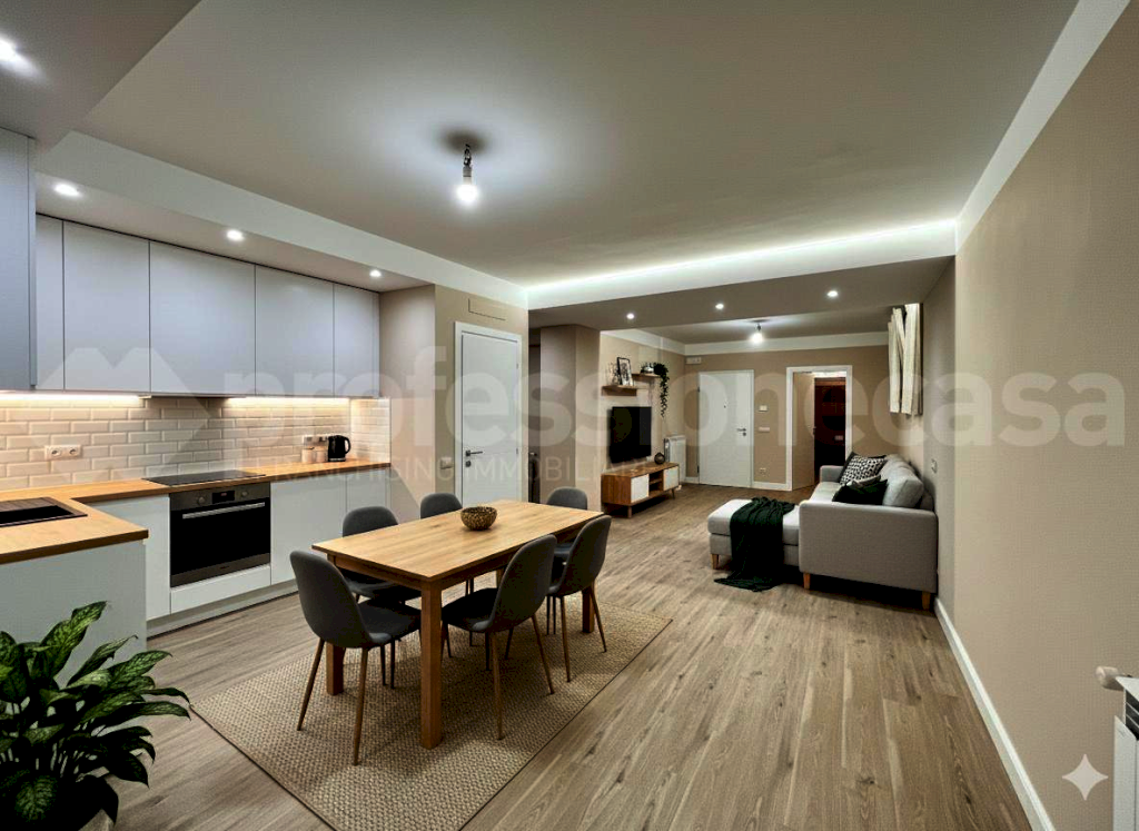 L'appartamento, nato dalla sapiente conversione di ex ufficio, ha beneficiato di una ristrutturazione completa chiavi in mano, per poter godere di una casa pronta ad essere abitata, come si evince da foto.