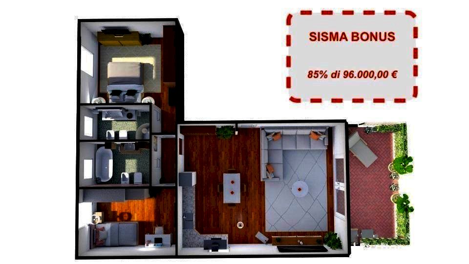LA PARTE ACQUIRENTE PUO' PORTARE IN DETRAZIONE 48.000 € PER GLI SGAFI FISCALI DEL SISMA-BONUS. Proponiamo in vendita, nel quartiere di Porta a Lucca, a due passi dal centro storico di Pisa e da tutti i servizi di prima necessità, un ottimo appartamento di nuova costruzione facente parte di un fabbricato di sole 5 unità abitative, con ampi spazi verdi a comune, che lo rendono una soluzione ottimale per chi cerca la tranquillità e la comodità della vivere in città. L’appartamento, sito al 1° piano con ascensore, di circa 90 mq si sviluppa in 4 vani ed è composto da ingresso in ampio soggiorno con cucina aperta a vista in open-space di complessivi 36 mq con accesso ad un'ampia terrazza abitabile di 25 mq in parte coperta (perfetta anche per pranzi e cene all'aperto), disimpegno notte, due camere da letto matrimoniali, 2 bagni entrambi con finestra; completa la proprietà un grande garage doppio di circa 35 mq. L’unità abitativa così come l'intero l’edificio sono dotati di impianti tecnologici di ultima generazione, come ad esempio impianto di riscaldamento a pavimento, impianto fotovoltaico, portoncino blindato, infissi in triplo vetro e PVC, che lo classificano in Classe Energetica A3. La consegna è prevista per giugno del 2025.