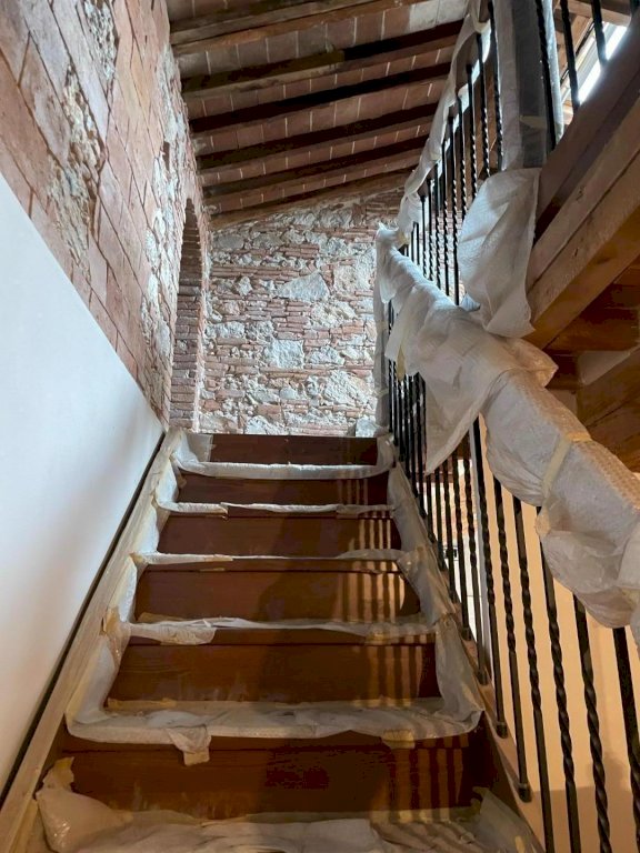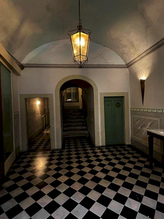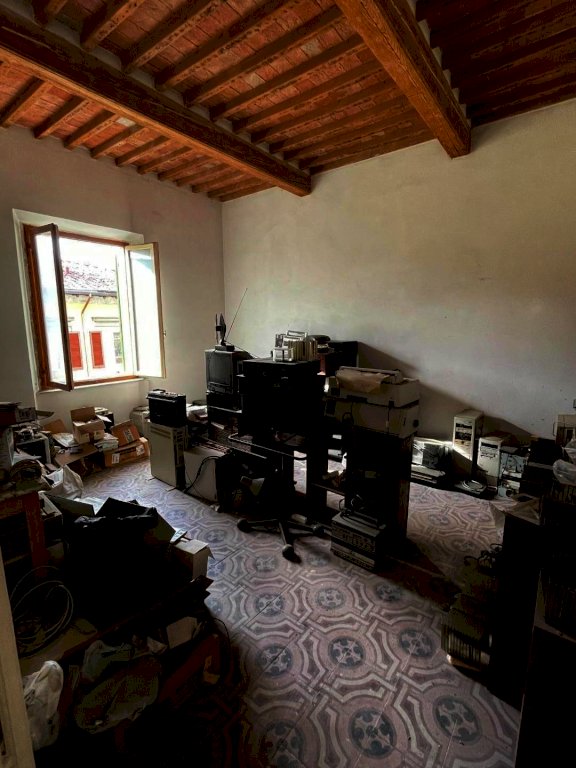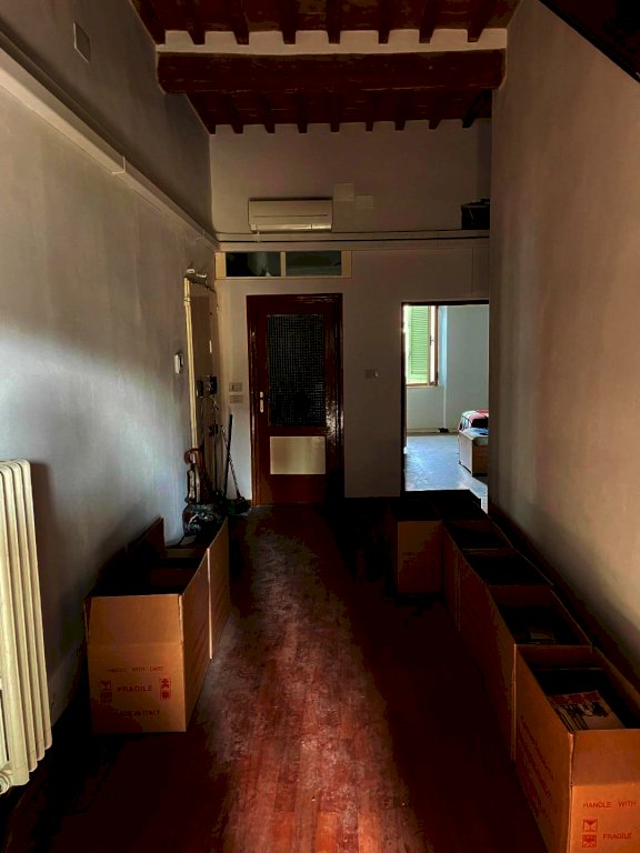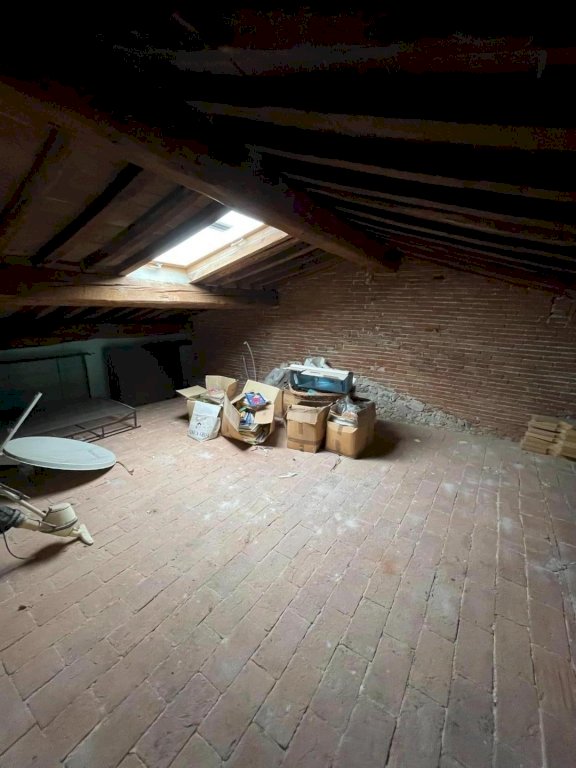 Pisa, Borgo Largo - Al terzo ed ultimo piano di un palazzo storico, recentemente ristrutturato con ascensore, questo appartamento di 200mq c.ca vanta spazi molto ampi e luminosità naturale, grazie anche all'altezza dei soffitti in travi antichi a vista restaurati. Dall'ingresso in grande corridoio si affacciano le sale e le camere dell'immobile. La camera padronale con bagno en suite, l'ampia cucina e zona pranzo conviviale, il salone doppio con affacci su Borgo Largo, lo studio che può anche essere adibito a terza camera, una camera con cabina armadio e il servizio. Gli affacci su Borgo Largo delle due sale e della camera regalano una vista suggestiva sul campanile di Vasari e sul fascino medioevale del quartiere. Una scala in legno massello elegante e robusta recentemente realizzata si accede all'ampia soffitta praticabile, un ambiente versatile e luminoso grazie ai lucernai.
