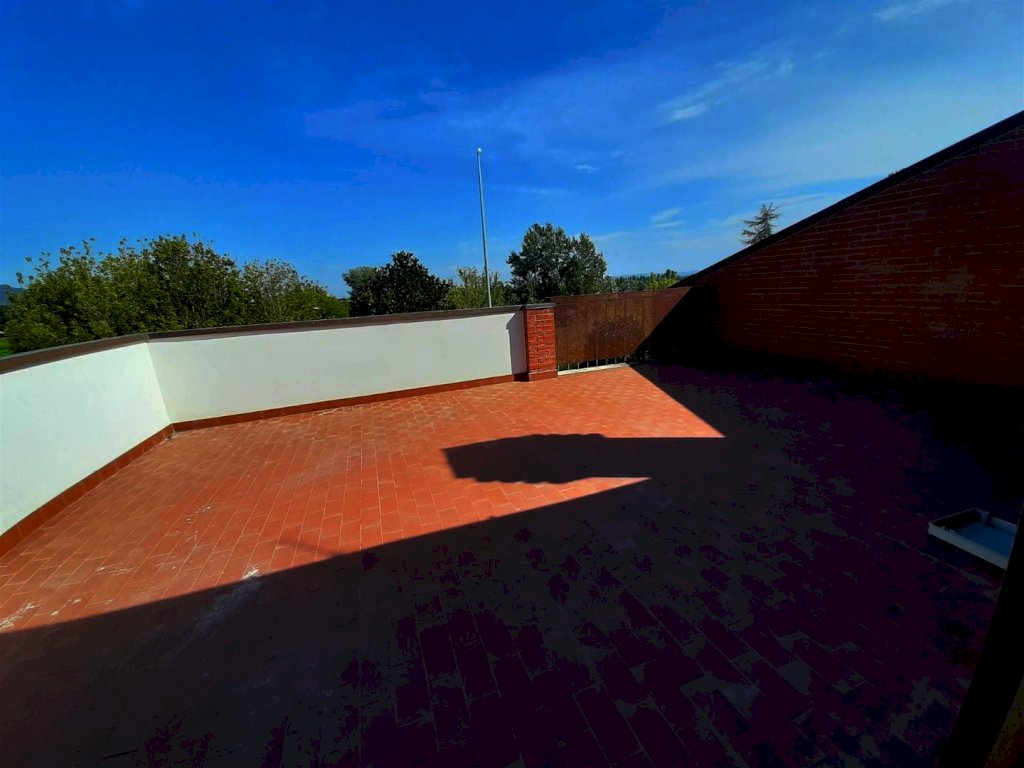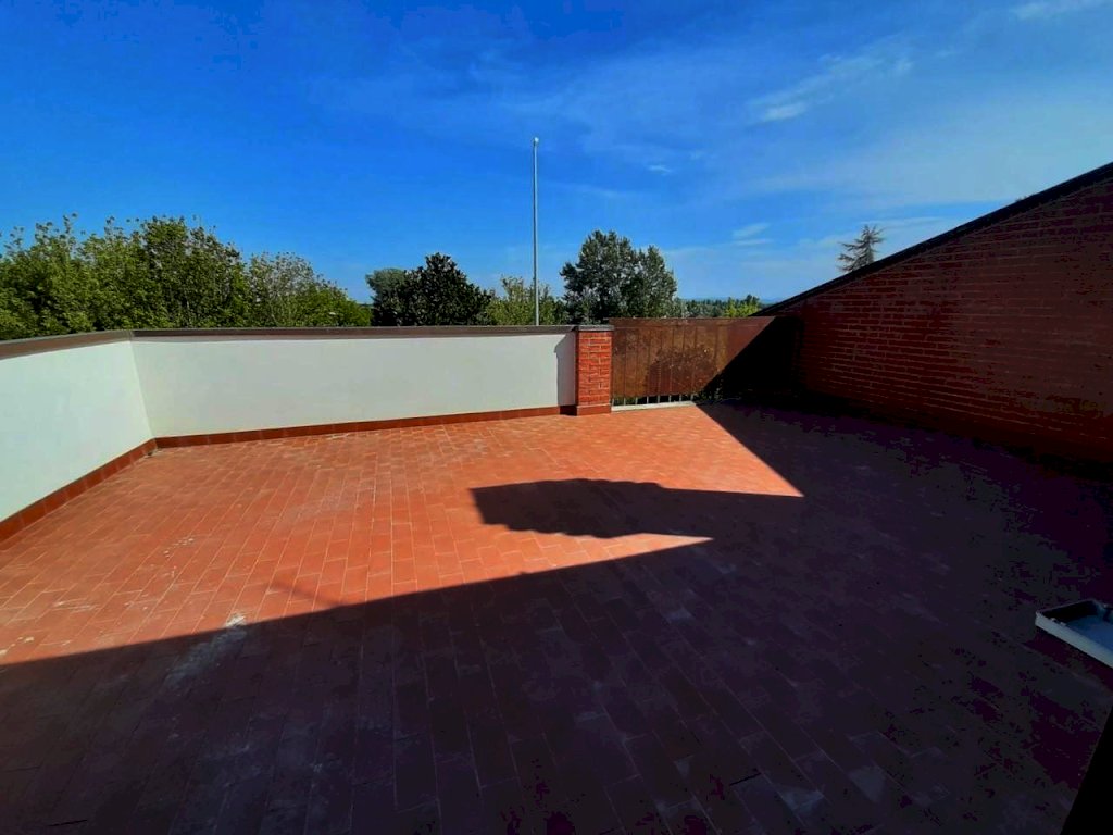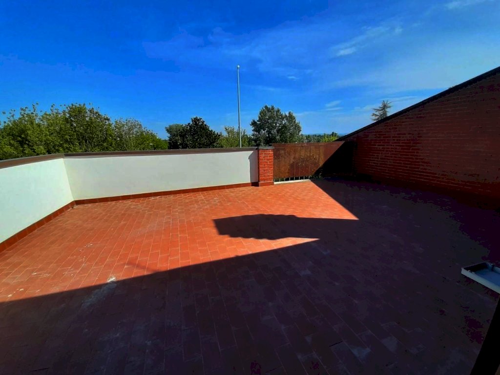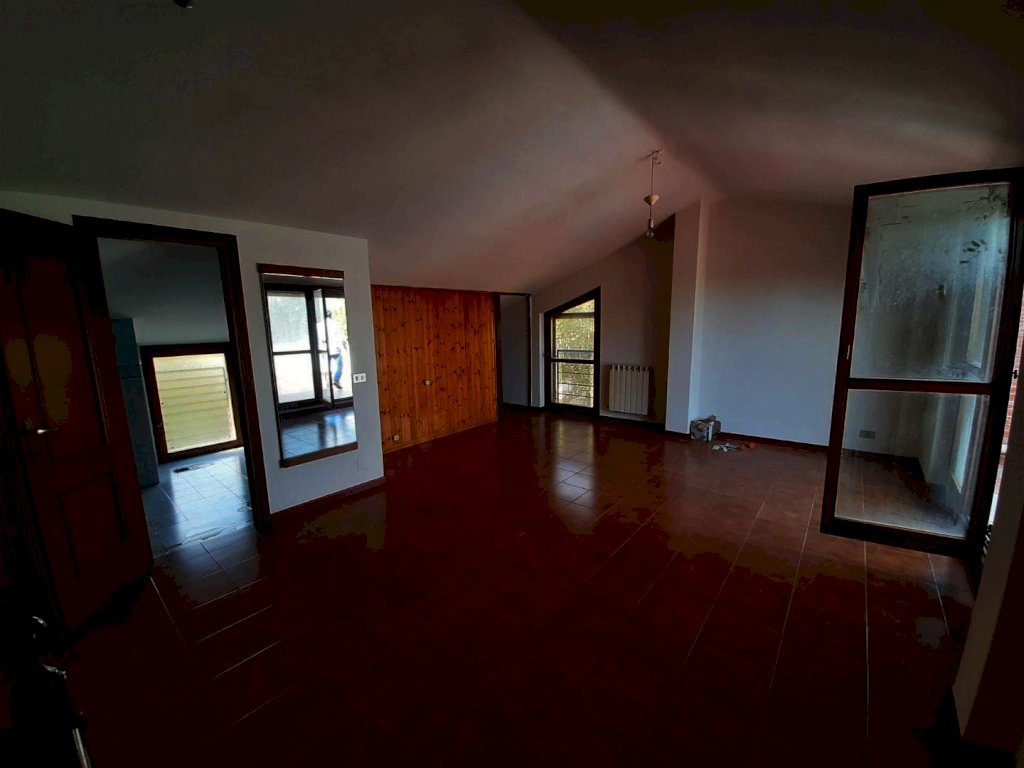 Vicino ai servizi e alle vie di comunicazione, in zona residenziale tranquilla, proponiamo in vendita un appartamento in quadrifamiliare con ingresso indipendente di complessivi 130 mq (85 mq il piano primo e 45 mq la mansarda). Si compone di ingresso indipendente al piano terreno da giardino esclusivo recintato di circa 90 mq dal quale una scala esterna conduce al piano primo dove troviamo il soggiorno, cucina abitabile, disimpegno notte, due camere, bagno con finestra; tramite scala in legno si accede al piano mansarda dove troviamo un ampio e luminoso vano di 45 mq con porta finestra che conduce ad una terrazza di circa 30 mq; infine completa la proprietà un ampio garage di circa 30 mq posto al piano seminterrato del fabbricato. Riscaldamento autonomo. Immobile già libero e subito disponibile.