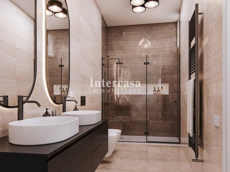 Disponibile anche l’Appartamento al piano sottostante: posto su due livelli con posto auto e giardino di 45 mq circa, piano terra e 1° piano, 145 mq, con doppio accesso pedonale e carrabile, così composto: al piano terra, ingresso in soggiorno, cucina abitabile, disimpegno notte, bagno con finestra, camera matrimoniale con bagno privato; al 1° piano, con accesso tramite scala interna privata, camera media e bagno privato.
