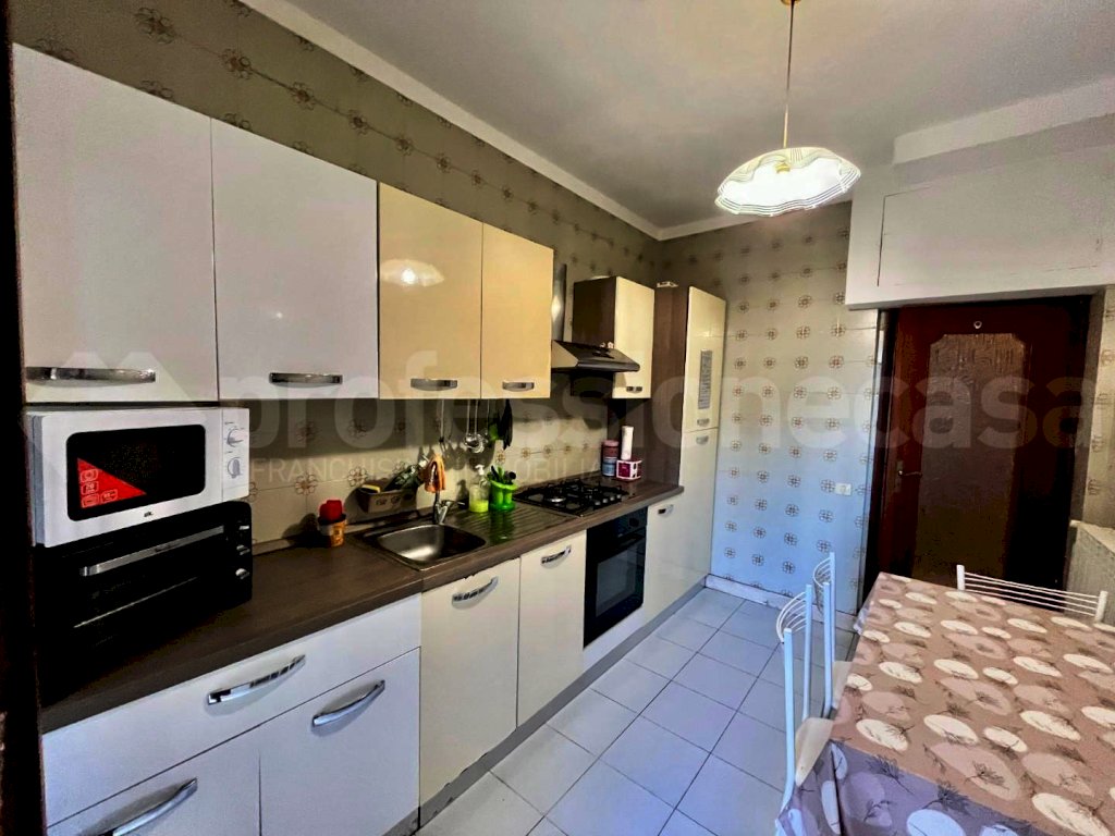 L'appartamento è composto da ingresso, cucina abitabile, tre ampie camere (di cui una ricavata dal soggiorno), bagno finestrato e funzionale ripostiglio.