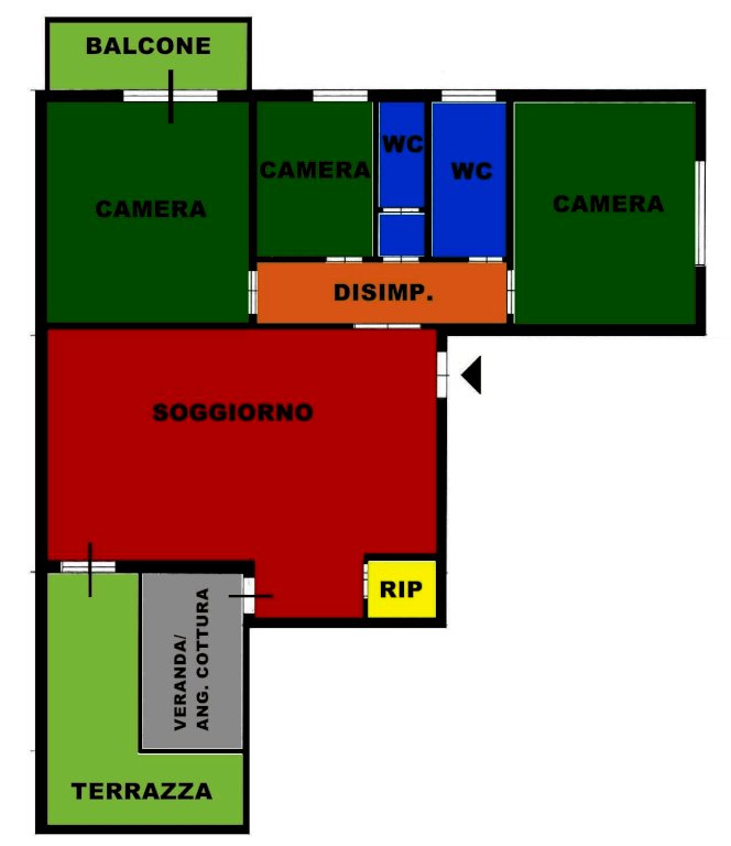 DON BOSCO: Inserito in contesto tranquillo lontano dal traffico APPARTAMENTO 5 VANI posto al piano primo di piccola palazzina. L'ingresso è direttamente nella grande zona giorno di oltre mq. 45 dalla quale si accede ad una terrazza di mq. 25 in parte verandata dove attualmente è stata ricavata la cucina, oltre ampio disimpegno notte con due grandi camere matrimoniali, balcone, camera singola, bagno con doccia e finestra e altro piccolo bagno di servizio. Al piano terra posto sul retro del fabbricato GARAGE di proprietà. L'immobile si presenta in BUONE CONDIZIONI con pavimenti in parquet e BAGNO RECENTEMENTE RISTRUTTURATO. Riscaldamento centralizzato. Allarme. IMMOBILE DALLE GRANDI POTENZIALITA' DATA LA GENEROSITA' DELE SUPERFICI. CE G. Rif. NC598 Rich. € 280.000 tr.