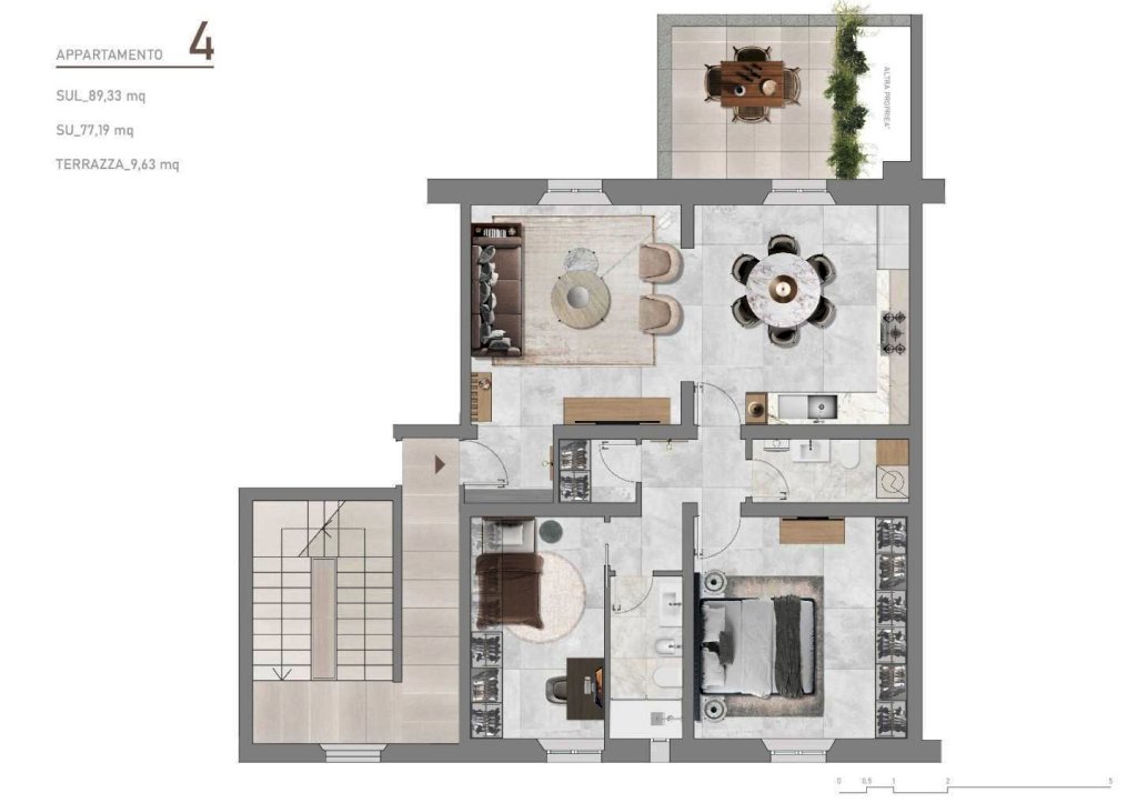 Questo immobile, rappresenta un'opportunità unica per chi cerca un investimento di qualità , e composto da soggiorno ,cucina abitabile , 2 bagni , ripostiglio e 2 camere , terrazzo abitabile 10 m .