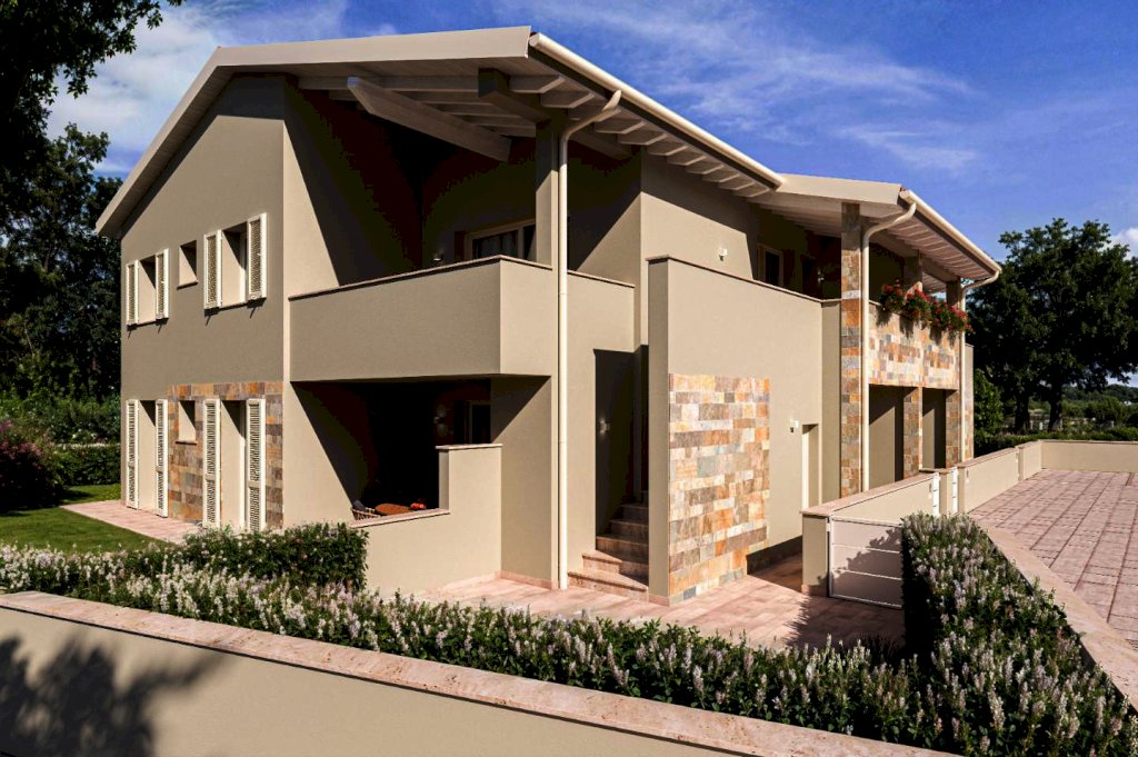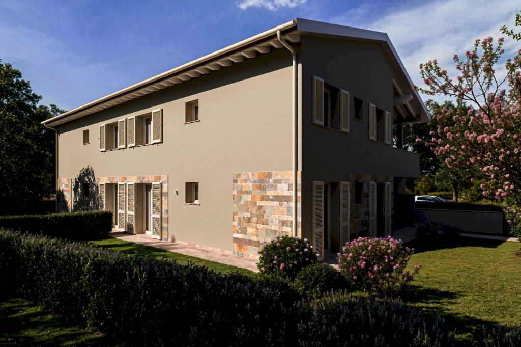 Pontedera - NUOVA COSTRUZIONE - via de Nicola/ via Calamandrei - NOSTRA ESCLUSIVA - Appartamento in vendita con ingresso indipendente e giardino, di 113 mq. oltre a grande mansarda di 30 mq., posto al piano 1° ed ultimo di una palazzina di sole 4 unità. L'appartamento si compone di terrazza coperta d'accesso, ingresso in grandissimo soggiorno di 39 mq. con terrazza coperta abitabile, cucina abitabile, disimpegno notte, 2 camere, 2 bagni (entrambi finestrati) e ripostiglio. Dal soggiorno si accedere alla masarda comnposta da un bel ripostiglio e da un vano pluriuso (terza camera, studio ecc.). Completa la proprietà il giardinetto e doppio posto auto. Ottima zona, bellissimo il contesto. Capitolato eccellente, 5 kwh. di fotovoltaico, soffitti in legno laccati di bianco a vista. Classe energetica: A4 - € 368.000 tratt. Rif. 1426
