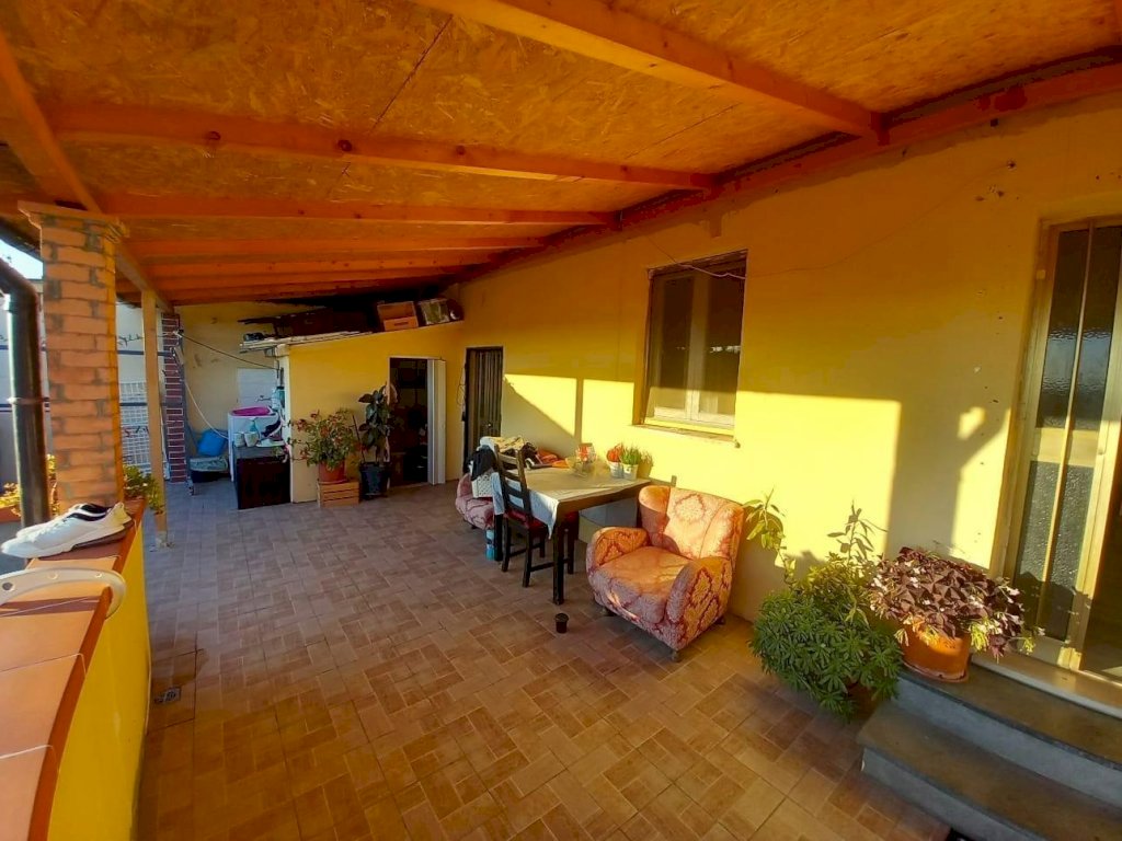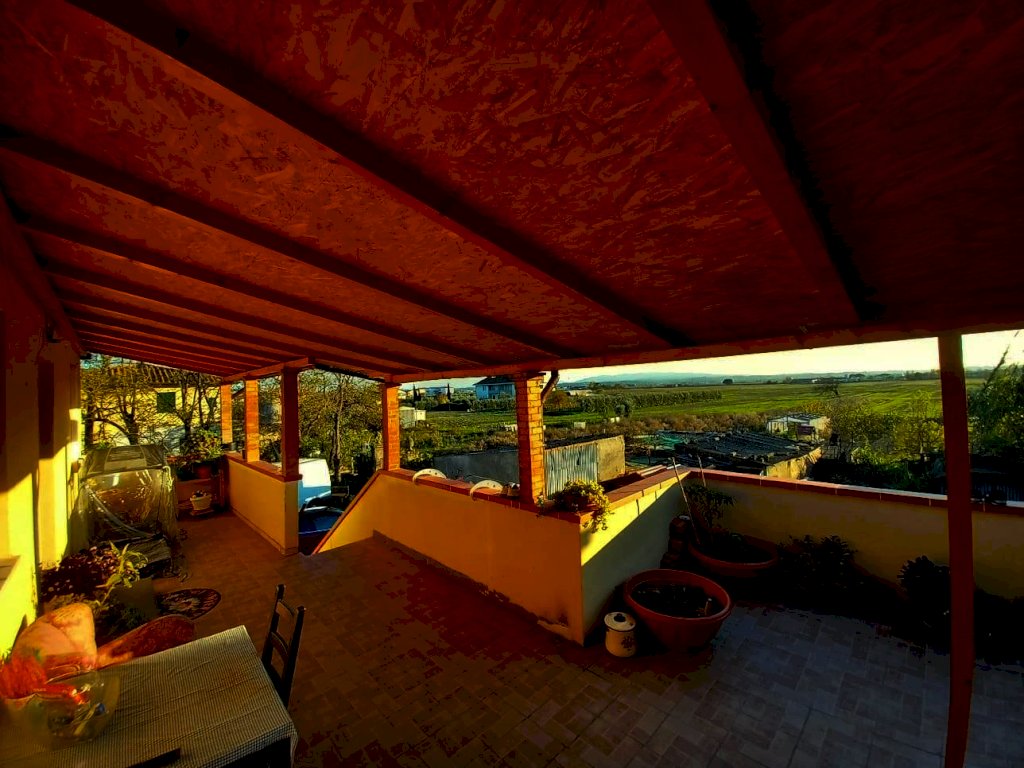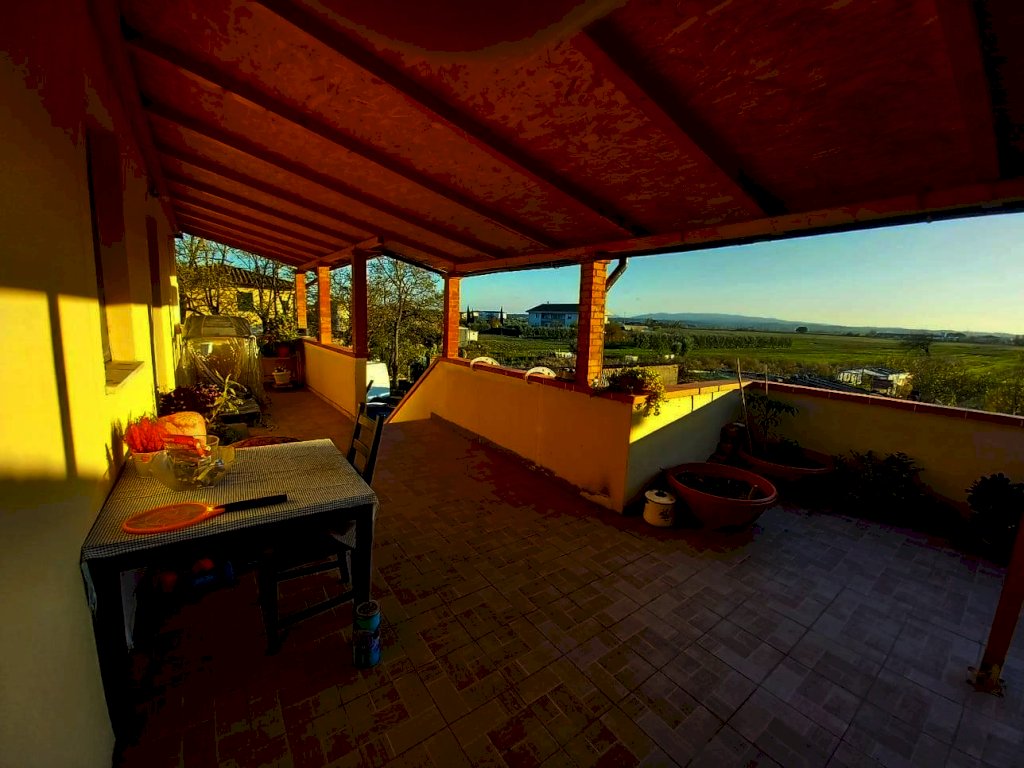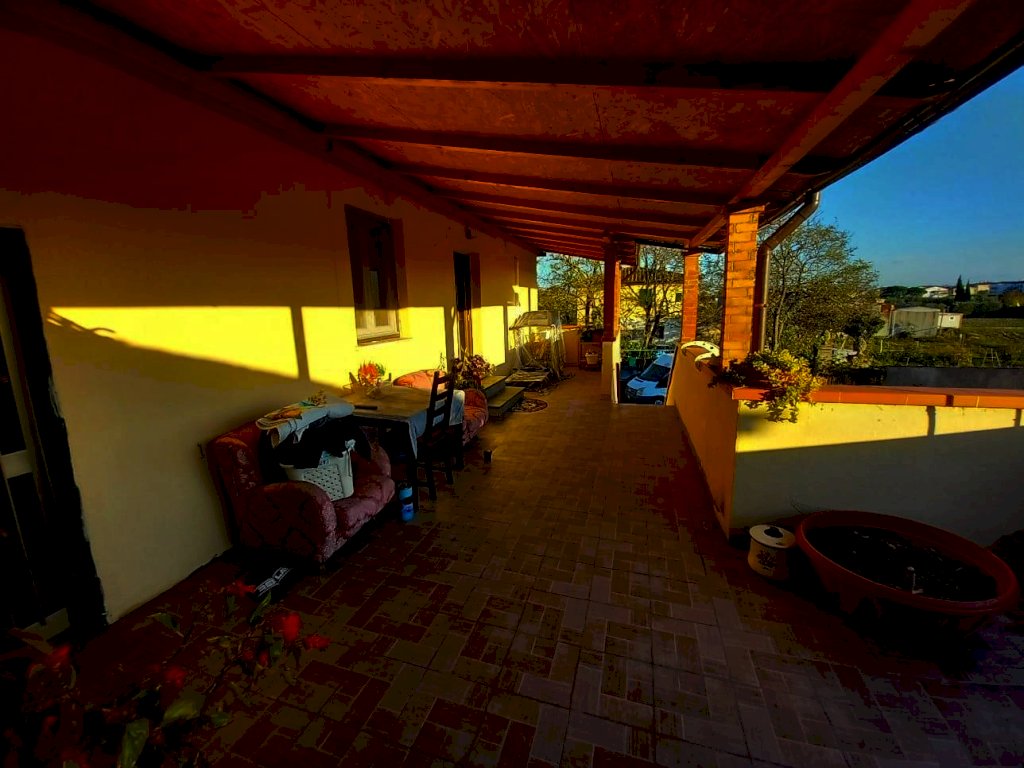 Pontedera (Gello) - Luminoso appartamento di circa 130 mq, ristrutturato nel 2021, posto al 1°piano con bellissima terrazza vista tramonto di circa 40 mq. Al p.terra ci sono circa 140 mq di fondi (C/2) sviluppati su 3 locali. Questa zona è completamente da ristrutturare. Conclude l’immobile un terreno distaccato dalla casa a 20 metri di distanza, esattamente oltre la corte condominiale, di circa 500 mq, nel quale poter sviluppare un orto di grandi dimensioni. Si accede all’appartamento da scala al p.terra che conduce alla stupenda terrazza al 1° piano, qui vi è l’ingresso nella grande sala di circa 45 mq, poi, attraverso un disimpegno, si accede alla zona notte composta da 3 camere da letto (di cui una di circa 30 mq con soffitto e pareti in legno perlinato, un bagno e un vano di passaggio. Si specifica che la ristrutturazione è stata completa ma senza il rifacimento del tetto in quanto in buono stato di manutenzione. Per quanto riguarda il riscaldamento attualmente è con la stufa a legna, si specifica che l’impianto di riscaldamento è presente compreso di caloriferi ed è stato realizzato nel 2021, quindi è praticamente nuovo, ma al momento non è allacciato, quindi deve essere tenuta in considerazione una spesa di circa 3.000 per l’allaccio. Aria condizionata in sala e in una camera da letto. Prezzo vendita € 300.000. Rif. W3891AQ