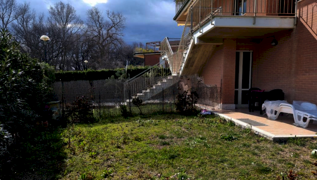 Appartamento a Porto Sant'Elpidio (FM), in Via Ravenna, con affaccio su corte pertinenziale esclusiva di circa 125 mq, sistemata a giardino privato e recintato. L'abitazione è composta da una zona giorno con ingresso-soggiorno e angolo cottura, e da una zona notte con disimpegno, camera matrimoniale con bagno privato, locale pluriuso attualmente adibito a cameretta e secondo bagno. Dalla cameretta si accede, tramite scala interna, al garage situato al piano sottostante. Soluzione comoda e ben distribuita, ideale per chi desidera spazi esterni privati in un contesto residenziale tranquillo e funzionale.