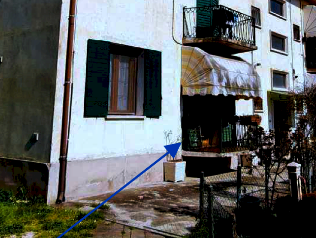 Appartamento al piano rialzato con porzione di giardino ad uso esclusivo e ripostiglio esterno situato a Portogruaro (VE) in via Lugugnana, costituito da un ingresso, ripostiglio, un soggiorno, una cucina, due camere da letto ed un bagno; al piano secondo con ingresso centrale vi è una soffitta che si sviluppa sulla metà a destra del fabbricato ad uso ripostiglio.