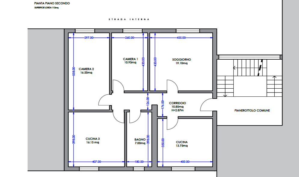 L'abitazione è posta al piano quarto, composta da tre camere,un bagno una cucina,soggiorno e un corridoio.