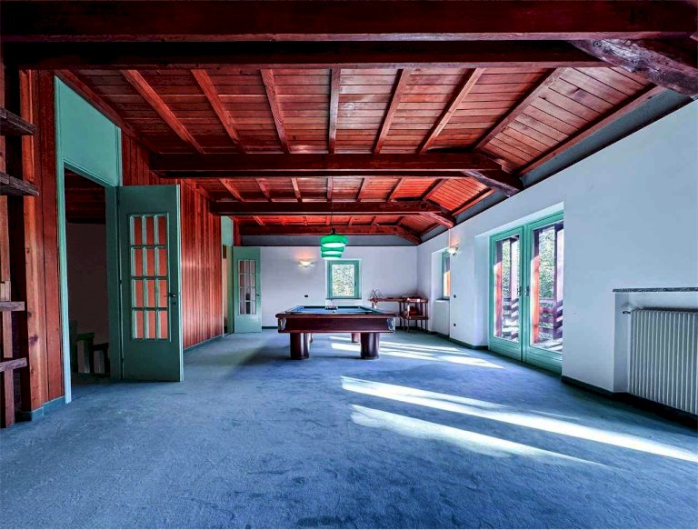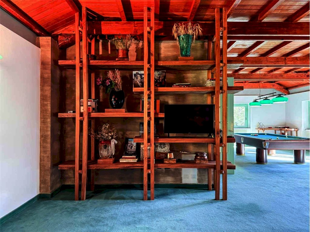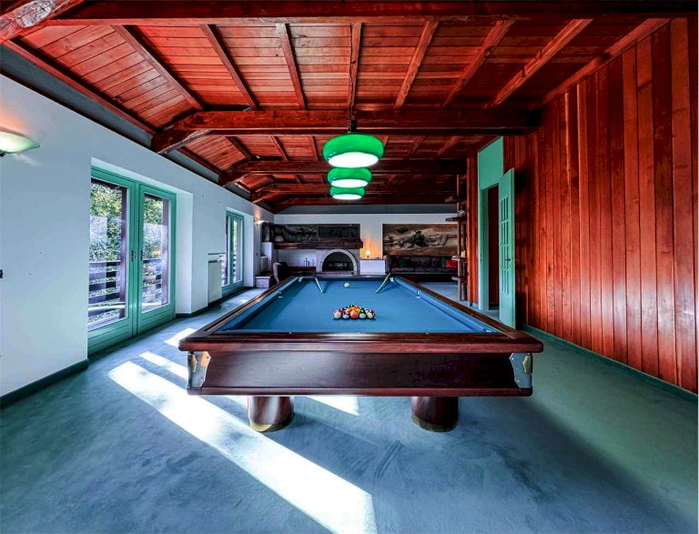 Dettagli di pregio arricchiscono la proprietà: caminetti con inserti antichi, affresco decorativo nell'open space, tavolo da biliardo incluso, porte interne a tutt'altezza e suggestiva travatura lignea al piano superiore.