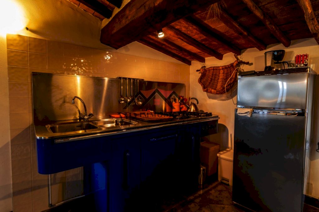 La sua composizione è formata da: ingresso che funge anche da disimpegno permettendo una divisione tra la zona notte e la zona giorno, una cucina con soggiorno open space ma la caratteristica fondamentale di questo unico ambiente è la vista dalle finestre ed il soffitto in travi, travicelli e mezzane che oltre ad essere caratteristico e tipico in Toscana dona un’eleganza aggiuntiva a tutto l’ambiente. La zona notte vanta di due comode camere da letto e due bagni.