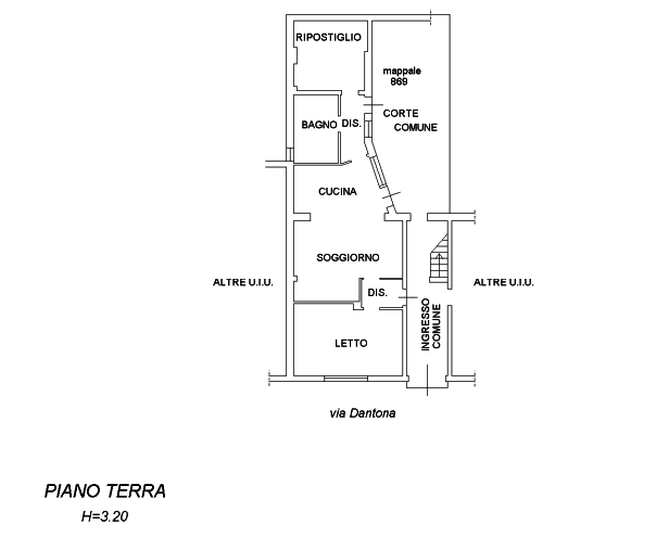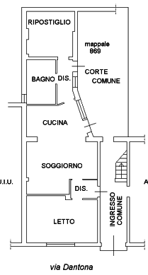 Unità situata al piano terra con corte interna composta da soggiorno con cucina, cameretta da letto, bagno e ripostiglio.