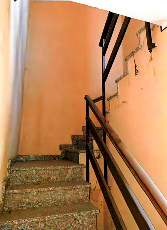 • Fabbricato ad uso abitazione distribuito su due piani collegati da scala interna, con annesso sedime pertinenziale esclusivo oltre a piccolo appezzamento di terreno con destinazione a verde privato e quota di comproprietà in ragione di interessenza sul cortile comune.