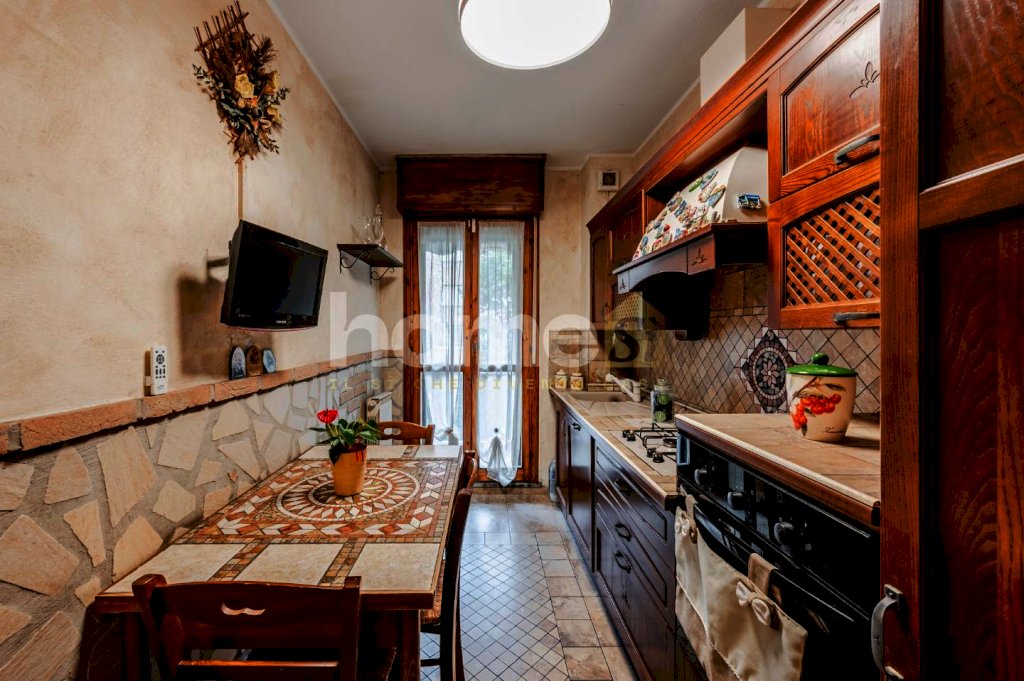 La cucina, separata e abitabile, offre tutto lo spazio necessario per cucinare e si affaccia direttamente sul terrazzo, un vero e proprio valore aggiunto. Il terrazzo, ampio e ben esposto, si estende dalla sala fino alla cucina, offrendo uno spazio esterno ideale per colazioni all’aperto, piante e momenti di relax all’aria aperta.