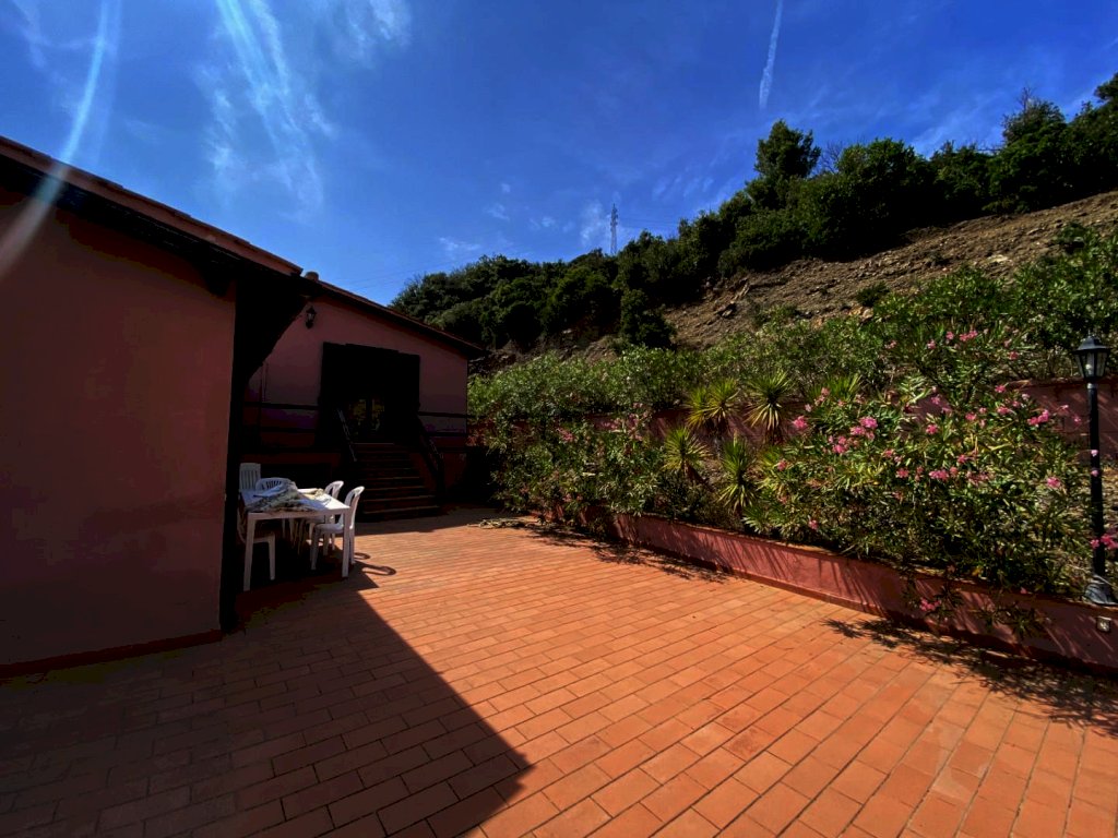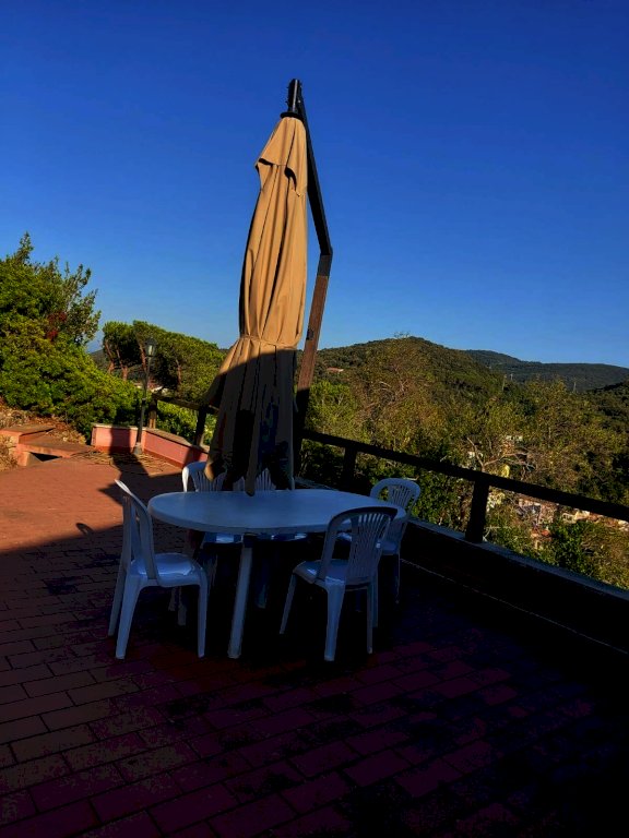 In villino bifamiliare, realizzato nel 2010, appartamento al piano primo con ingresso indipendente di mq. 250 mq commerciali con bellissima vista mare, la proprietà, che si sviluppa su due livelli, è internamente composta da ingresso, bagno con doccia e finestra, studio con porta finestra su balcone pranzabile collegato con la cucina, anch'essa con porta finestra con accesso al medesimo balcone, soggiorno con porta finestra su balcone pranzabile che si affaccia sul golfo ed un'ulteriore porta finestra su un'ampia terrazza collegata direttamente al terreno boschivo privato di 4.000 mq collegata ad un'altra ampia terrazza in accesso, tramite scala interna si accede alla zona notte, con 3 camere matrimoniali di cui una con bagno privato e porta finestra su resede esclusiva , disimpegno e bagno con doccia e finestra. Completa la proprietà al piano terra un garage di mq 16.