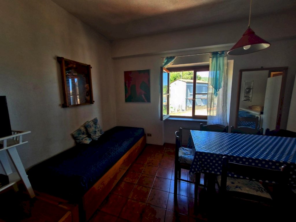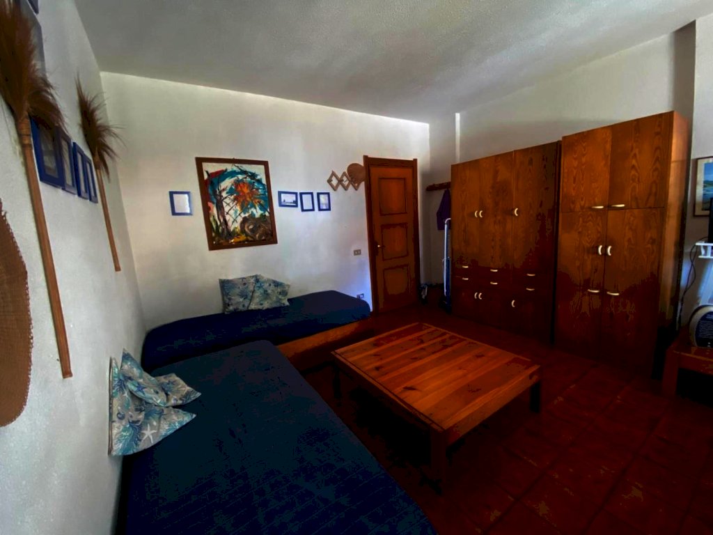 mq. 46 internamente composto da ampio soggiorno con angolo cottura, bagno con doccia, piccolo disimpegno e camera matrimoniale con vista mare. L’immobile è dotato di termoconvettori elettrici per il riscaldamento, boiler per acqua calda e bombola del gas per i fornelli.