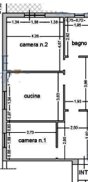 L'unità è situata al primo piano ed è cosi composta: ingresso, cucina, disimpegno, due camere, bagno e balcone.