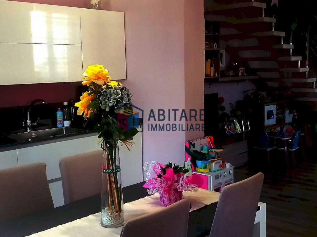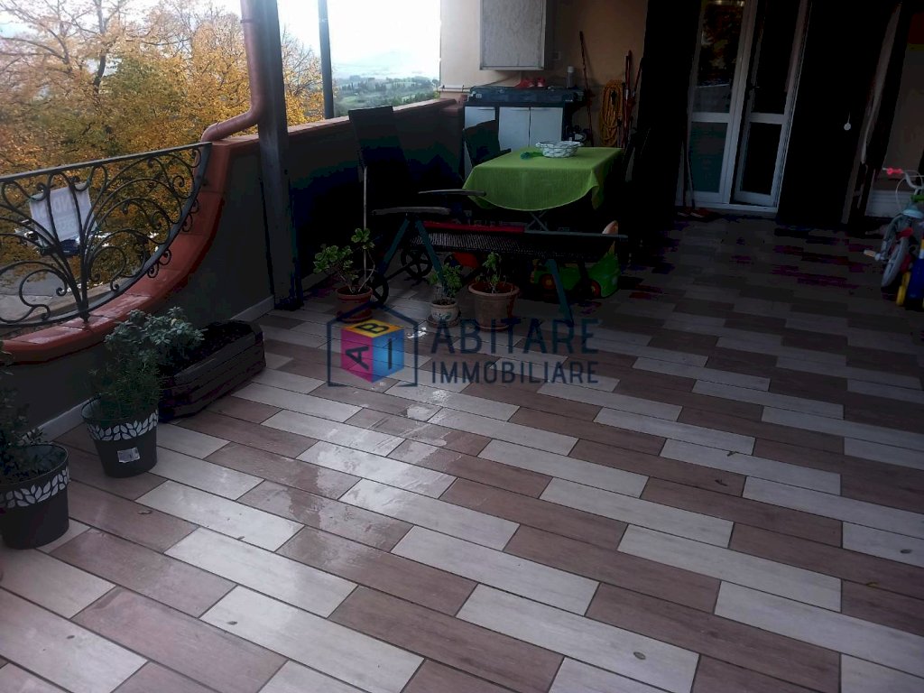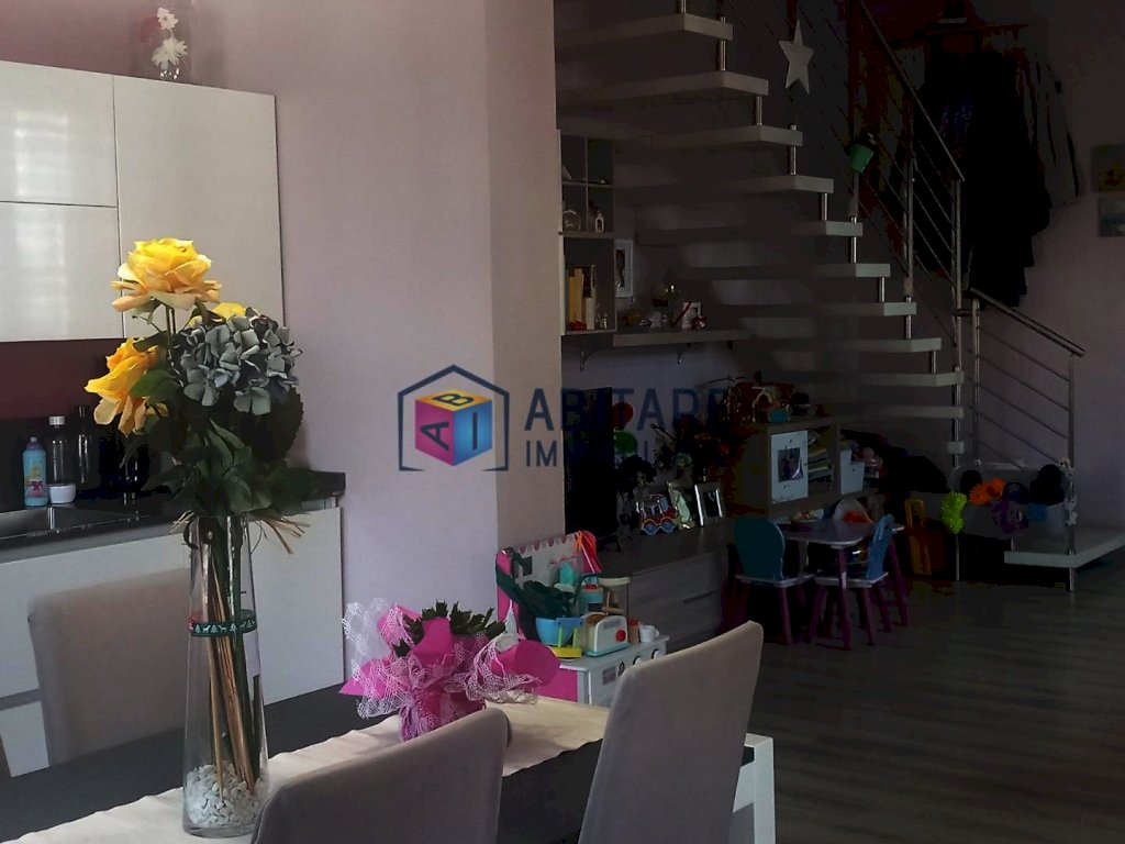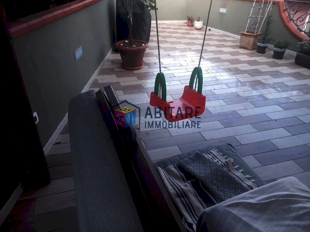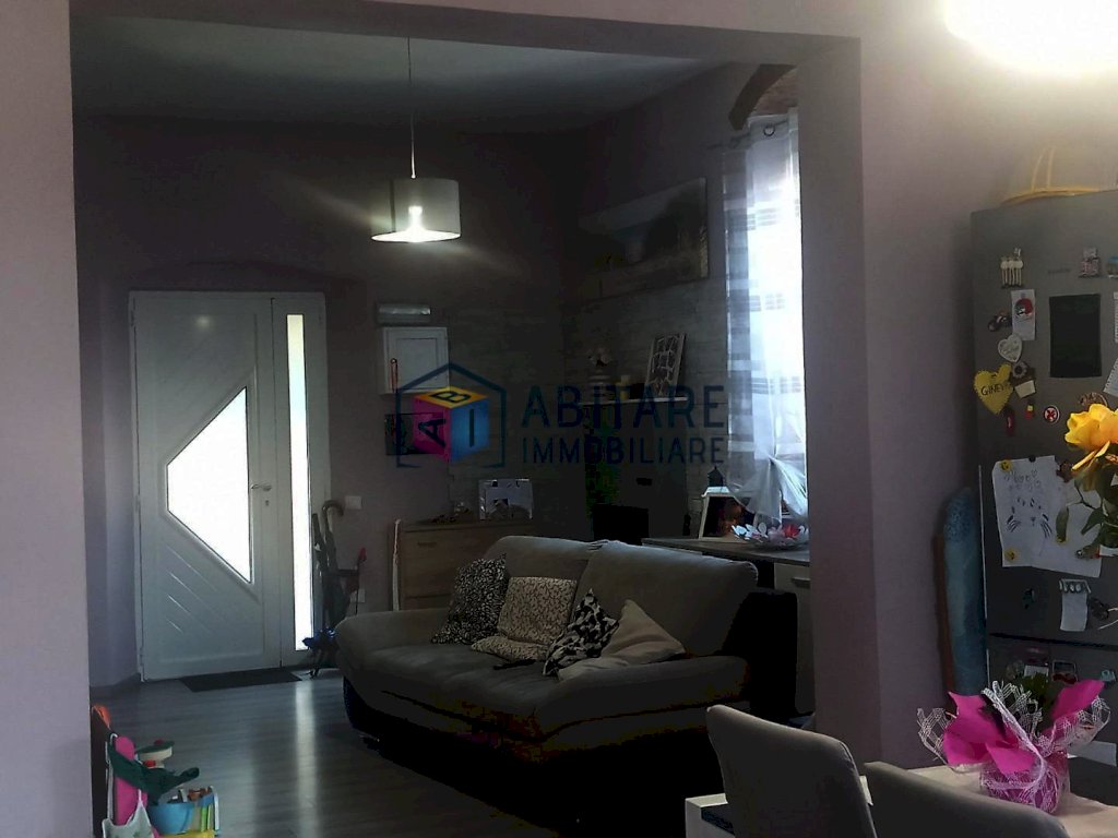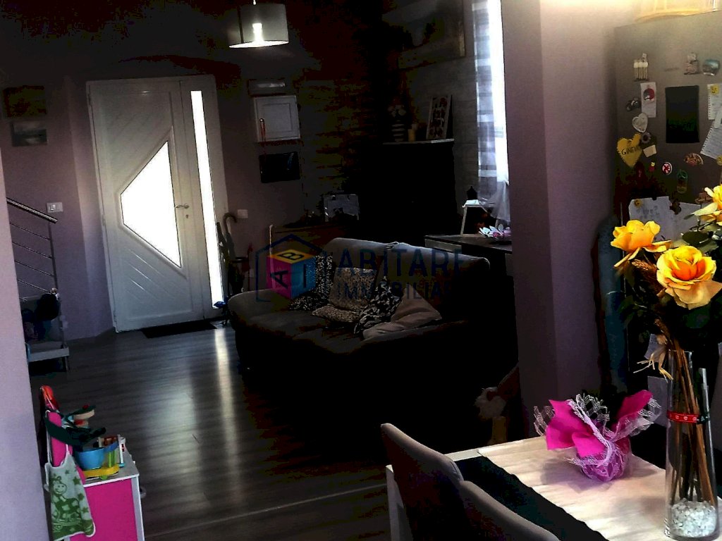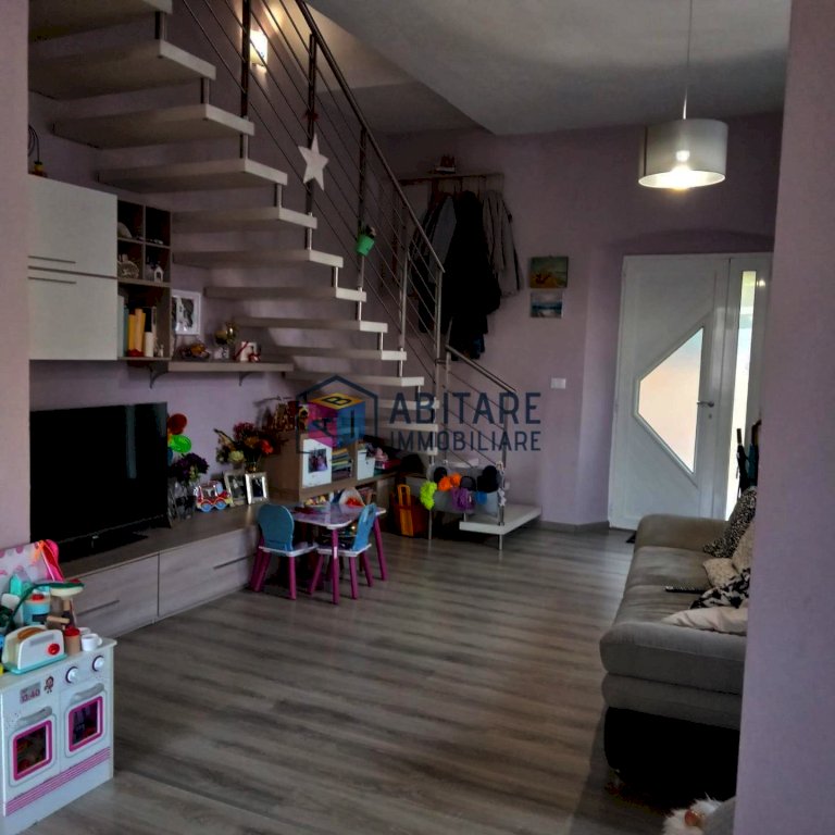 Ci troviamo nel centro del paese, in posizione dominante, zona fornita nelle immediate vicinanze di tutti i servizi necessari, tutti facilmente raggiungibili a piedi. L’immobile in questione è ubicato al piano terra rialzato, con ingresso indipendente, libero su tre lati e si sviluppa su due livelli di circa 114 mq. ed è così composto: ampia zona living con sala/soggiorno, cucina a vista dove è possibile accedere alla bellissima TERRAZZA di 35mq. completamente attrezzata, ottimo sfogo esterno per godersi la bella stagione, con meravigliosa VISTA PANORAMICA. Tramite una comoda scala raggiungiamo il piano superiore, che offre una camera matrimoniale, una camera media con spazio per cabina armadio, ripostiglio sottotetto, bagno con doccia e finestra. L’immobile è stato completamente ristrutturato e rifinito con ottimi materiali, riscaldamento AUTONOMO, presente anche una bellissima stufa a pellet effetto camino, ambienti climatizzati. Pavimenti in laminato effetto legno sbiancato, porte bianche laccate, infissi in pvc/vetro termico vasistas. Pannelli fotovoltaici. Nessuna spesa condominiale. Completano la proprietà un garage di 65mq. ed un locale di 36mq. entrambi da ristrutturare. UN OTTIMO AFFARE!!! SUBITO DA VEDERE!!!