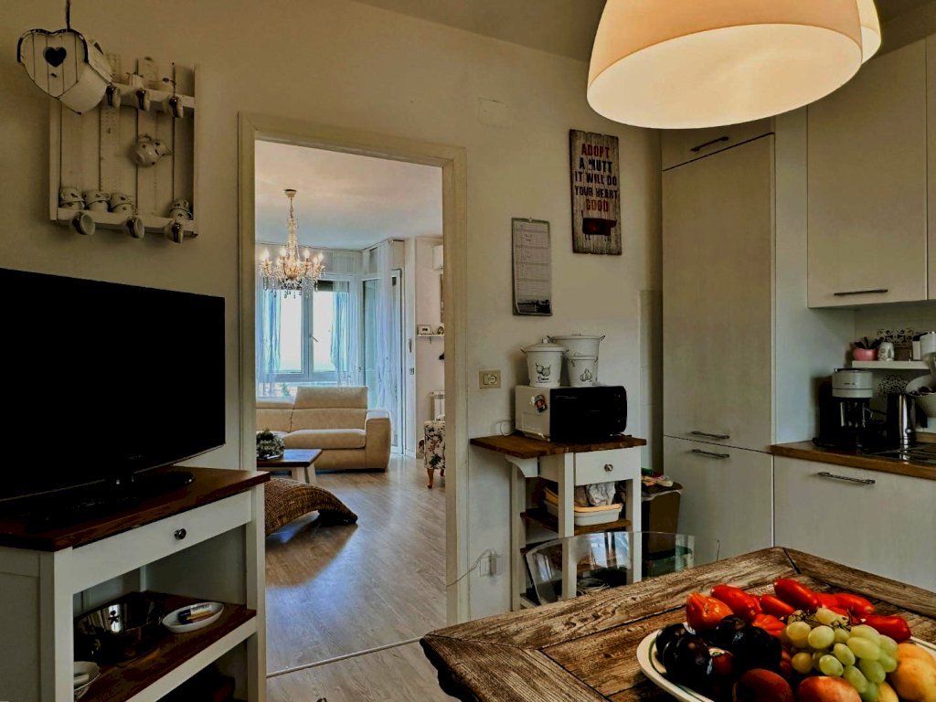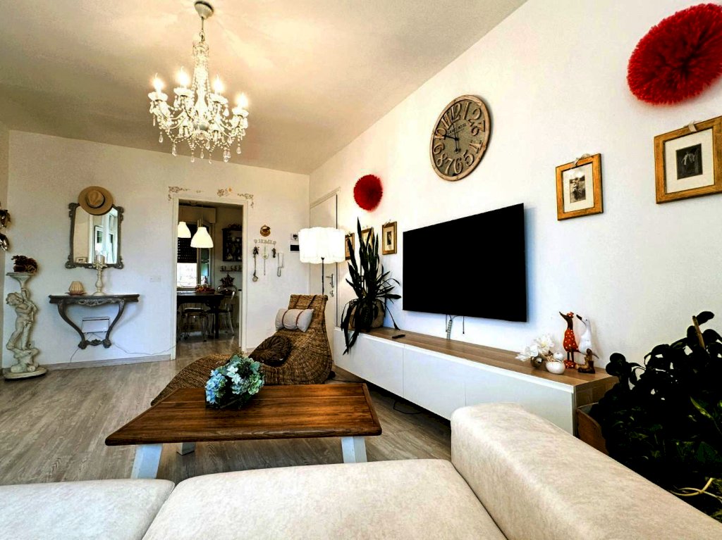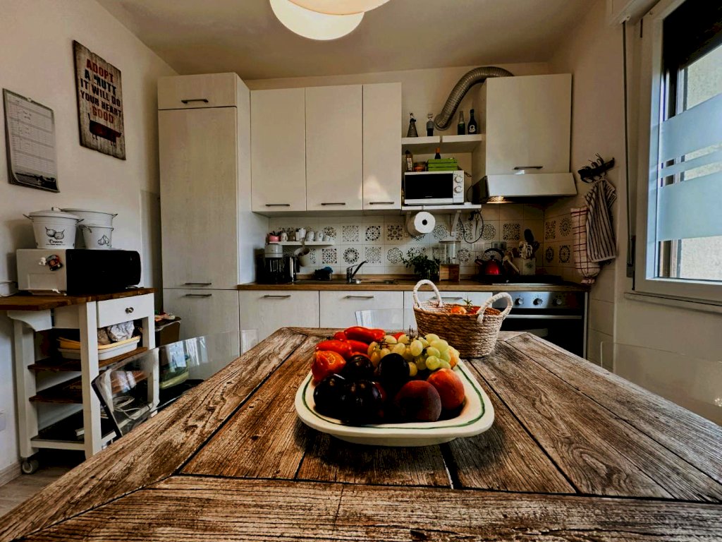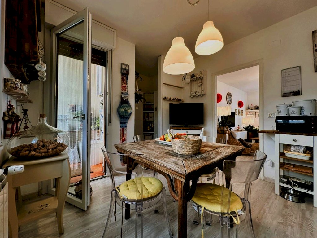 Spazi: Salone luminoso con terrazza, cucina abitabile, due camere matrimoniali, un bagno nuovo e un ripostiglio finestrato.