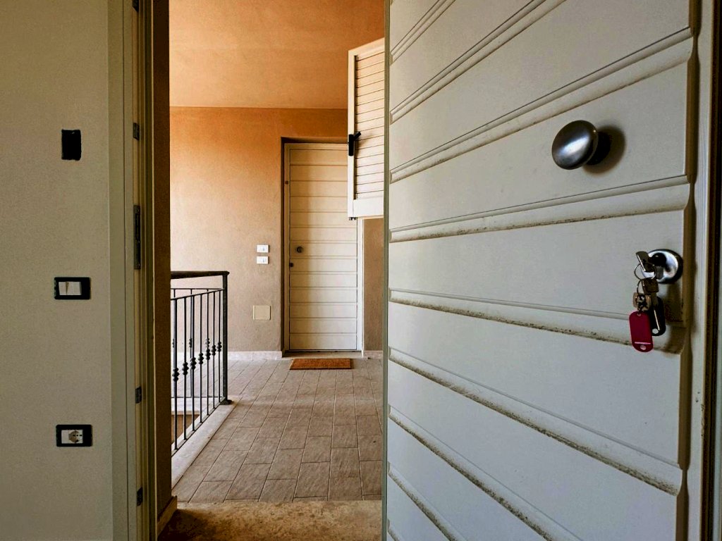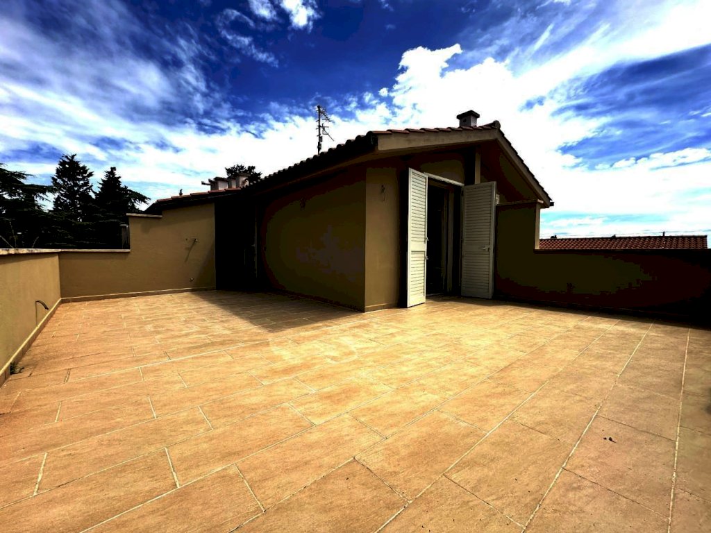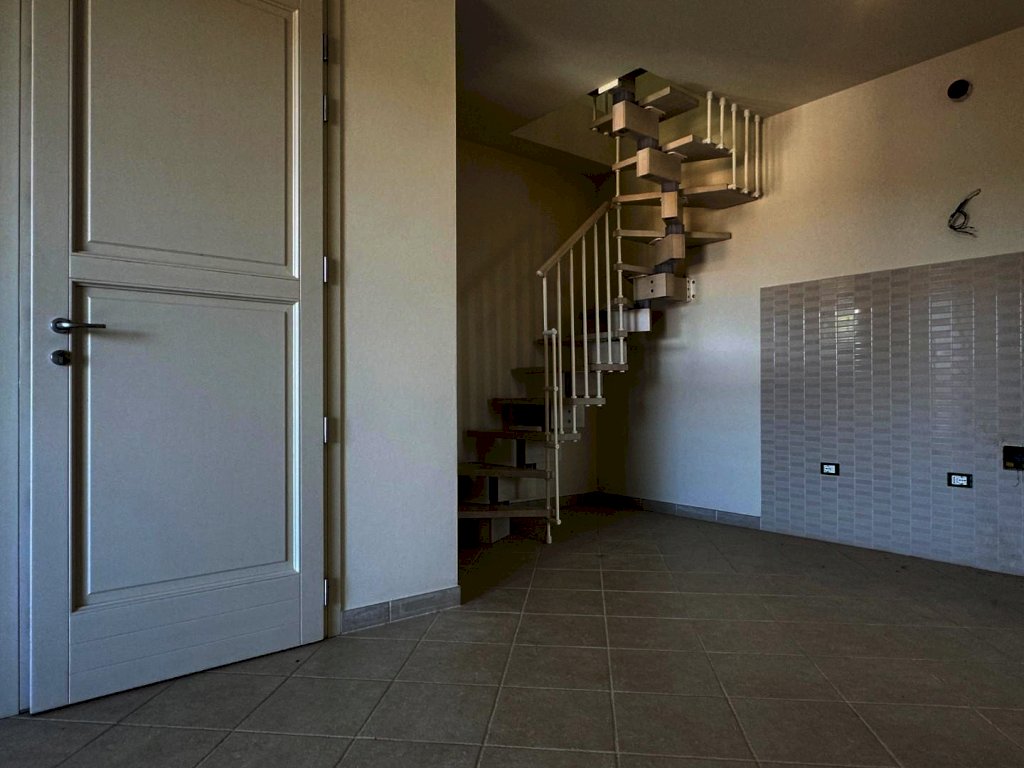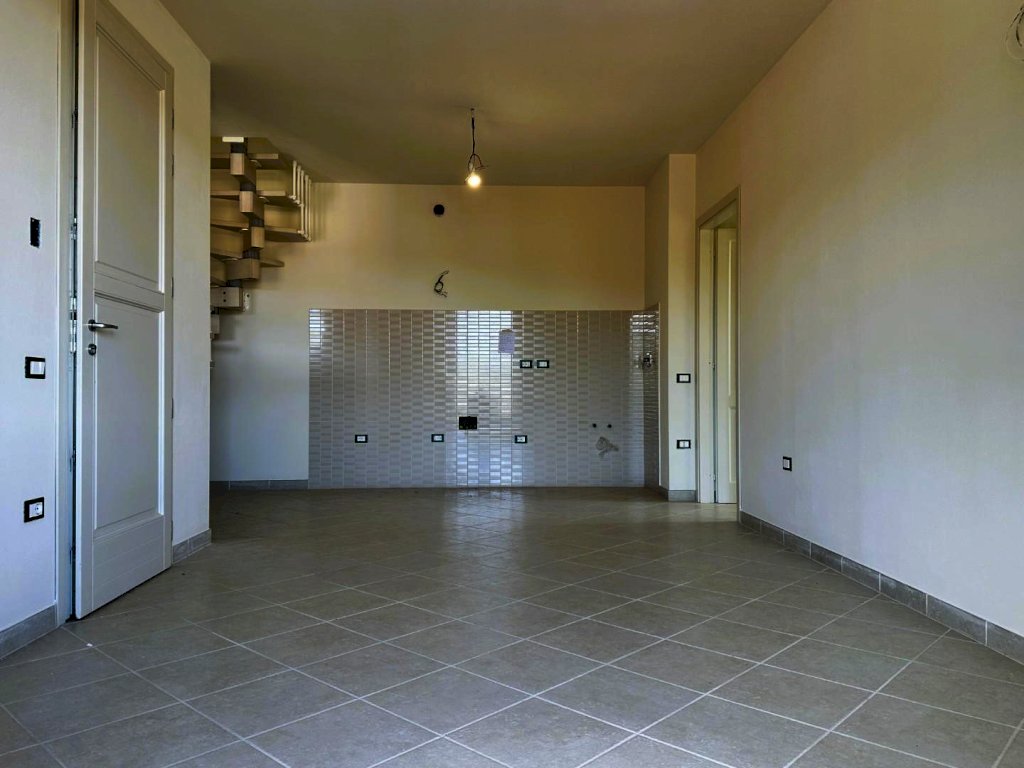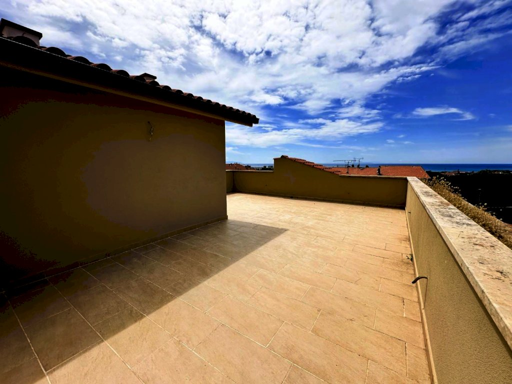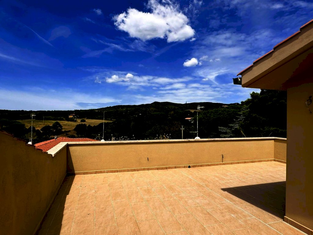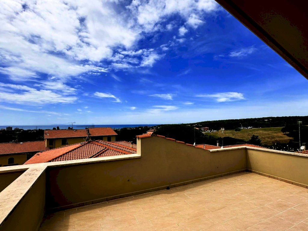 Rosignano Solvay - Caletta Alta. Immerso nel silenzio e nel verde a soli 1800 metri dal mare di Caletta, all'interno di un piccolo edificio di cui è stata ultimata la completa ristrutturazione, proponiamo appartamento di 3 vani, disposto su due livelli, con ingresso da scala esterna, al secondo ed ultimo piano con bellissimo ed ampio solarium vista mare e collina. La palazzina in cui è inserito si compone di 8 alloggi totali , 4 per piano e per complessivi 3 livelli includendo il piano terra dove sono presenti i garage. L'abitazione si compone di soggiorno con angolo cottura (23,80 mq.), disimpegno, una camera matrimoniale e bagno finestrato. Si accede al piano superiore a mezzo scala autoportante presente nel soggiorno e troviamo un comodissimo e luminoso locale multiuso ed il belissimo solarium panoramico (alla terrazza si accede anche dal disimpegno delle scale. Nella vendita è incluso anche il garage di 18 mq. al piano terreno. Rifiniture di ottimo livello, finestre ermetiche in legno con vasistas, persiane in alluminio, portoncino blindato, sanitari sospesi, box doccia in cristallo, caldaia Lamborghini. Zona residenziale tranquilla e di facile collegamento; ideale sia come abitazione residenziale che come casa uso turistico. Pronta consegna. (int.4 edifico A piano rialzato). Vendita soggetta ad imposta di registro; non presente condominio.