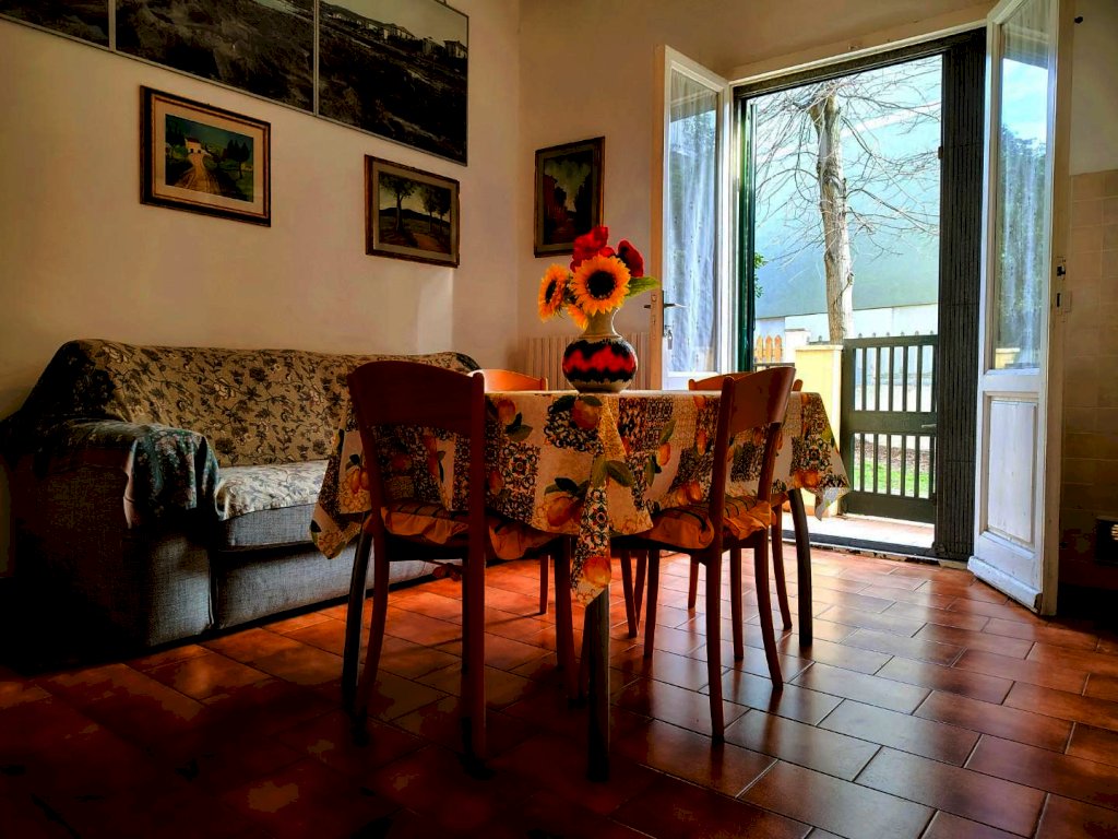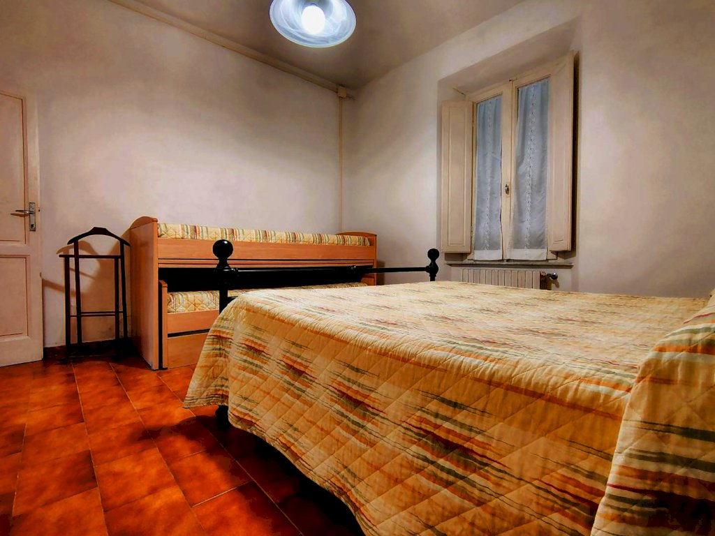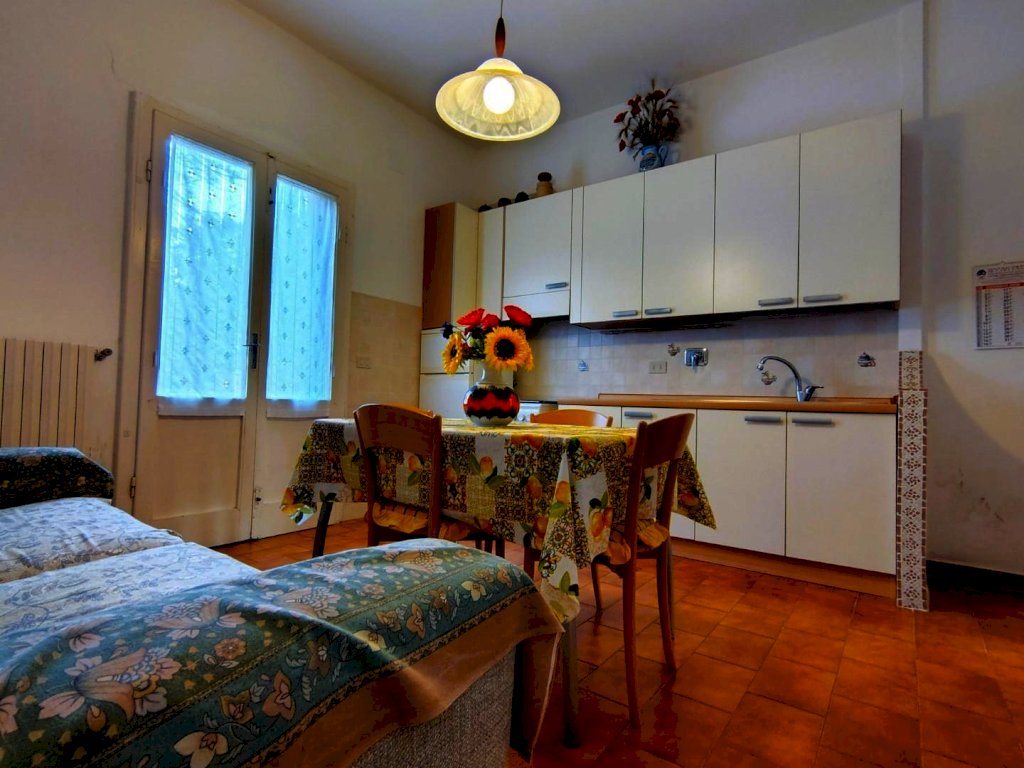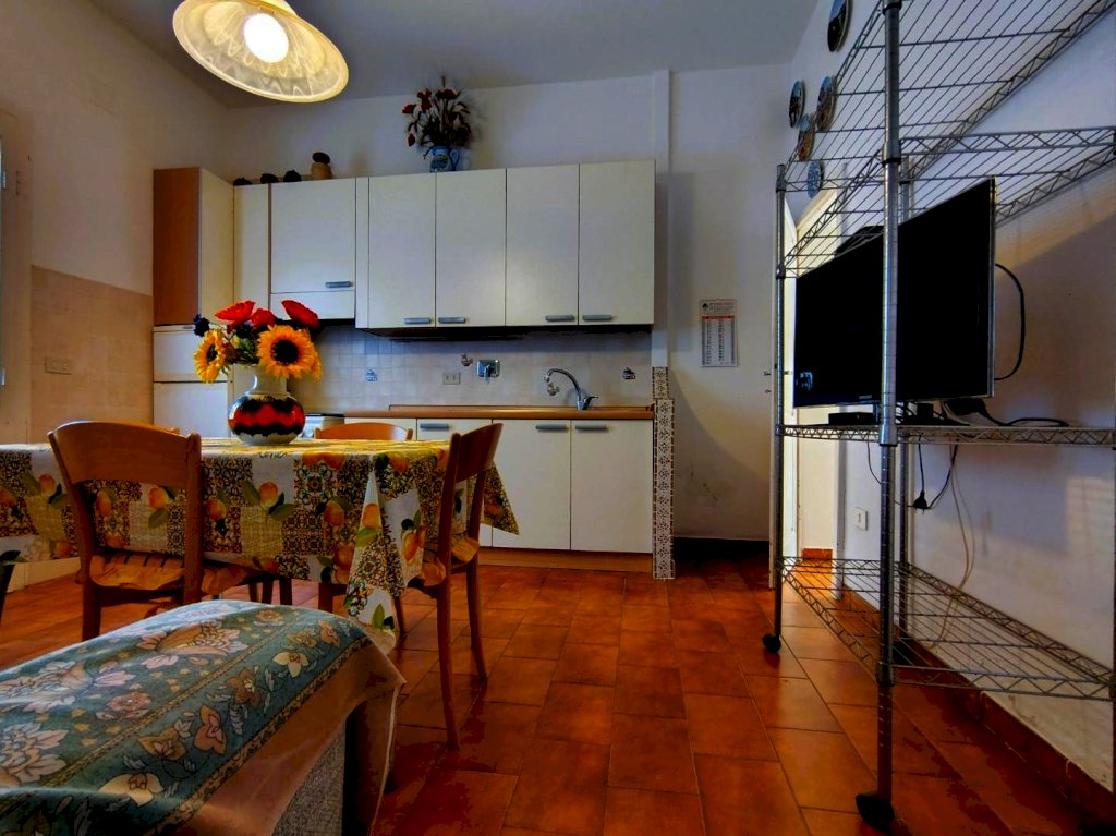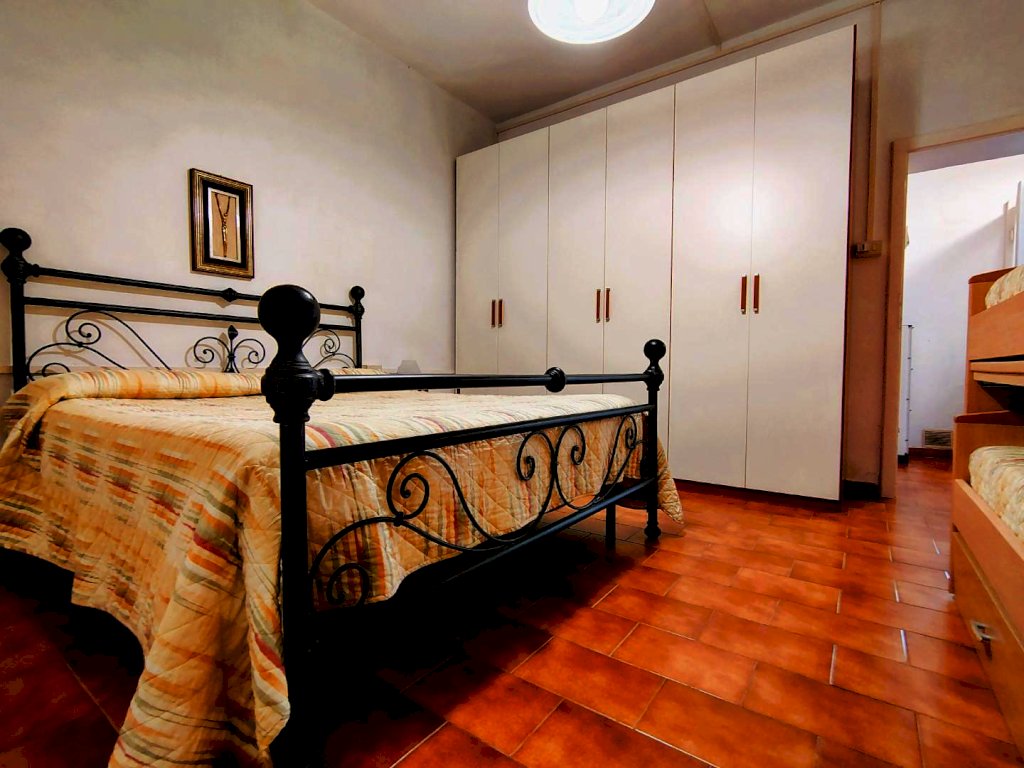 Da ingresso con resede a comune , si accede all'appartamento composto dall'angolo cottura e zona pranzo in un unico ambiente che accoglie anche il divano, il disimpegno separa la zona notte con un'ampia camera matrimoniale completa anche di letti a castello , il bagno con doccia e finestra.