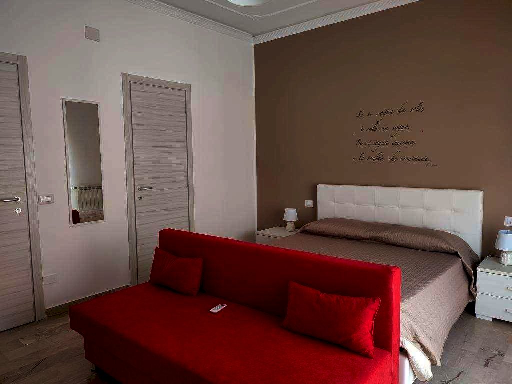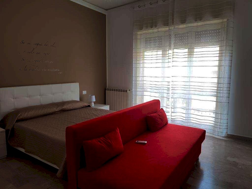 Moderno e accogliente appartamento, attualmente destinato ad uso B B, situato lungo il corso principale della città, in zona ben servita (negozi alimentari e non, bar, pizzeria, strutture sanitarie, strutture sportive, farmacia, servizio di trasporto pubblico etc.), della superficie catastale di mq 115, composto da: ingresso, corridoio, tre camere di cui due con balcone prospiciente la via pubblica, oltre alla stanza riservata al titolare, cucina componibile completa di elettrodomestici oltre lavatrice e asciugatrice, ripostiglio. L'appartamento garantisce 5 posti letto. Ciascuna camera è dotata di arredamento moderno tv e accessori, bagno privato completo di lavabo, wc/bidet, doccia. I locali sono riscaldati con radiatori alimentati da caldaia autonoma a gas metano, mentre il raffrescamento nel periodo estivo è assicurato in ciascun ambiente da impianto di climatizzazione. La riserva idrica è autonoma. L'appartamento è completamente ristrutturato e conforme ai requisiti e le dotazioni richieste dalla vigente normativa regionale in materia di unità abitative destinate a B B.