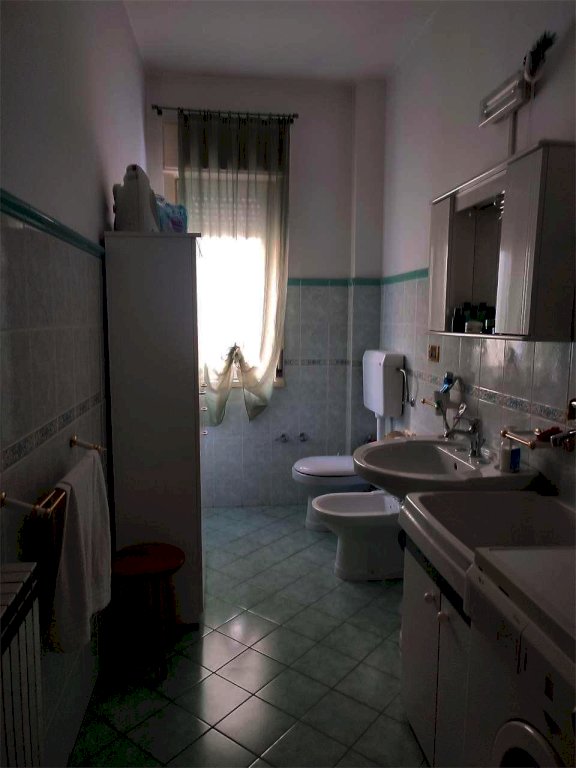 Appartamento al piano primo con ascensore, della superficie catastale di mq 119, composto da corridoio, due camerette, camera da letto, bagno e doppio servizio, ampia cucina con balcone prospiciente il Viale della Rinascita. Dotato di impianto di riscaldamento e riserva idrica autonoma. Classe energetica "G". Box auto di mq 30 ubicato in Via Donatori di Sangue, a pochi passi dall'abitazione principale a prezzo da concordare qualora interessati.