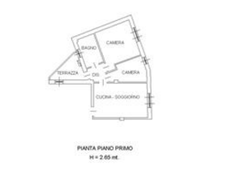 disimpegno e terrazza. Al piano terra, da un locale ad uso cantina, nonché posto macchina esclusivo nella corte comune, coperto da una tettoia comune in legno.
