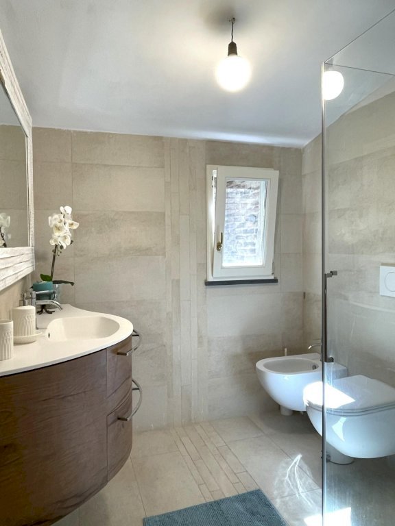 Questo elegante appartamento di circa 140 mq è situato al primo piano di un palazzo storico, recentemente ristrutturato, nel cuore del borgo, in un contesto riservato e tranquillo. La proprietà offre una cucina moderna e funzionale, una camera da letto luminosa, e una stanza aggiuntiva versatile. Il piano è completato da un bagno finestrato con doccia. Al piano superiore, sono presenti ulteriori spazi ideali per la realizzazione della zona notte.