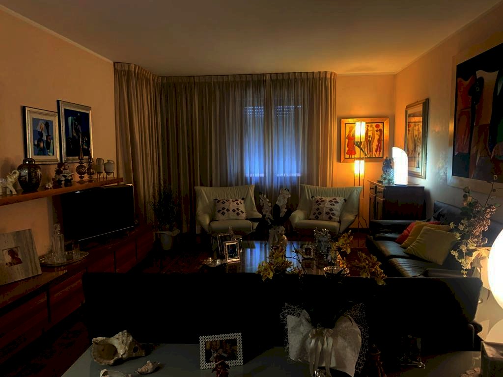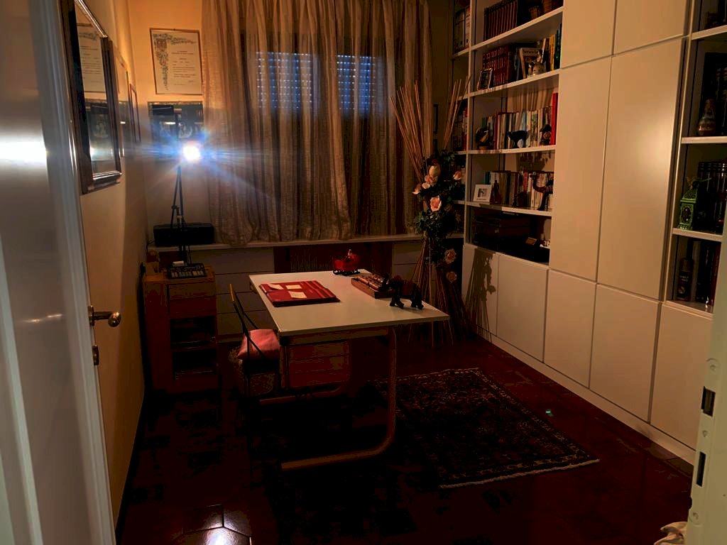 composto da cucinotto, ripostiglio, pranzo, soggiorno, ingresso reparto notte 3 camere, studio, e 2 bagni . due terrazzi e al piano seminterrato ampio garage di circa 60mq . Tutto in ottimo stato.