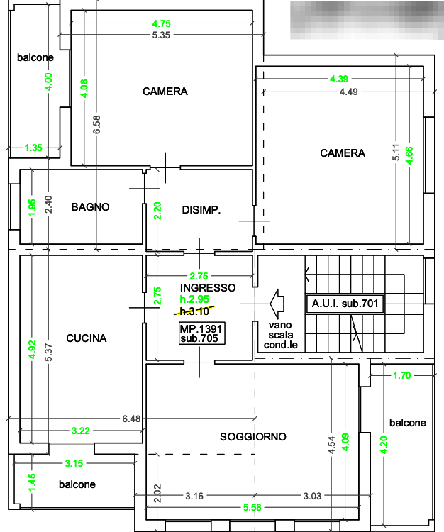 Trattasi di appartamento al piano secondo composto da ingresso, un ampio soggiorno e cucina serviti entrambi con balcone con affaccio a sud/est, disimpegno notte, bagno, camera con affaccio ad est e camera con balcone con affaccio ad ovest.