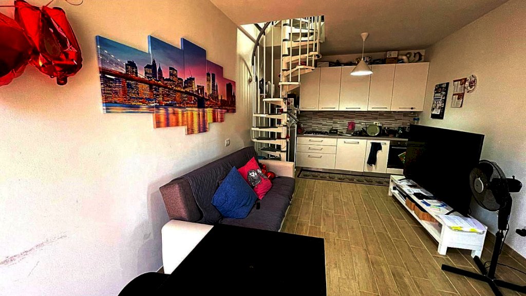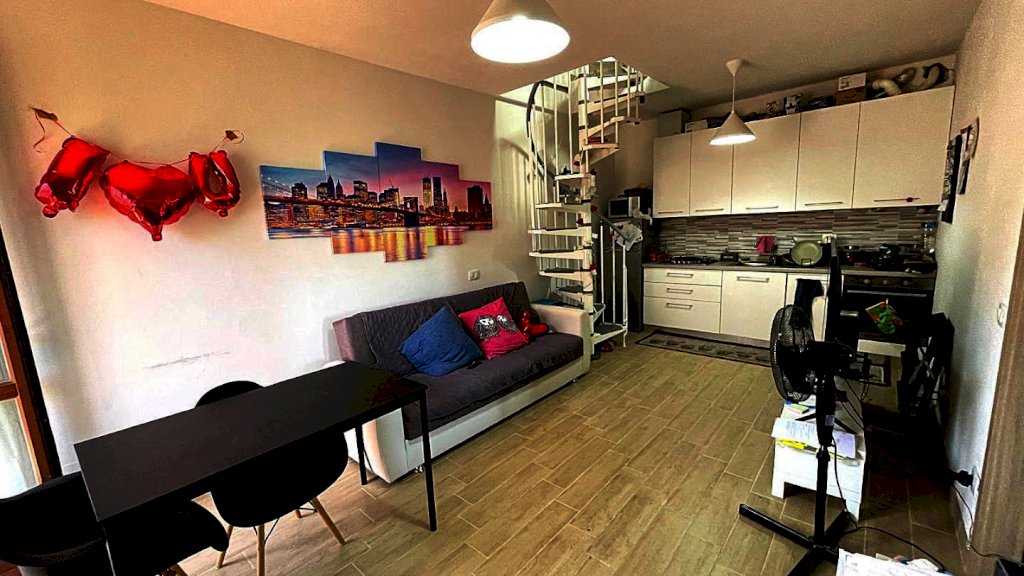 Nel Comune di Santa Maria a Monte nella frazione di Ponticelli è in vendita questo grazioso bilocale on ottime condizioni. Si accede da scala esterna a comune con alre 3 unità ed è posizionato al 2° piano ed ultimo del fabbricato. Ingresso in soggiorno con angolo cottura a vista, disimpegno notte, bagno con doccia e camera matrimoniale grande con terrazzo. Dalla zona giorno parte una scala a chiocciola che ci accompagna in uno spazioso sottotetto da utilizzare come stanza pluriuso con lucernario e riscaldamento. A piano terra Garage e posto auto.