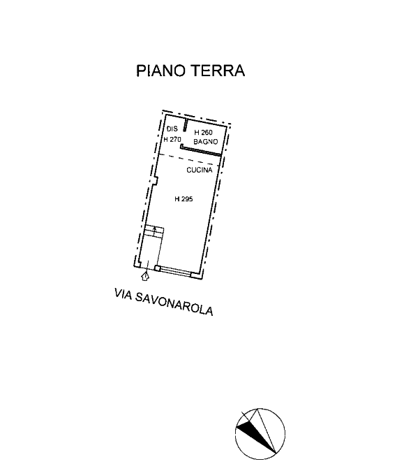 Monolocale con bagno posto a piano terreno con ingresso indipendente dalla pubblica via. inoltre dispone di un posto auto con accesso tramite cancello automatico.