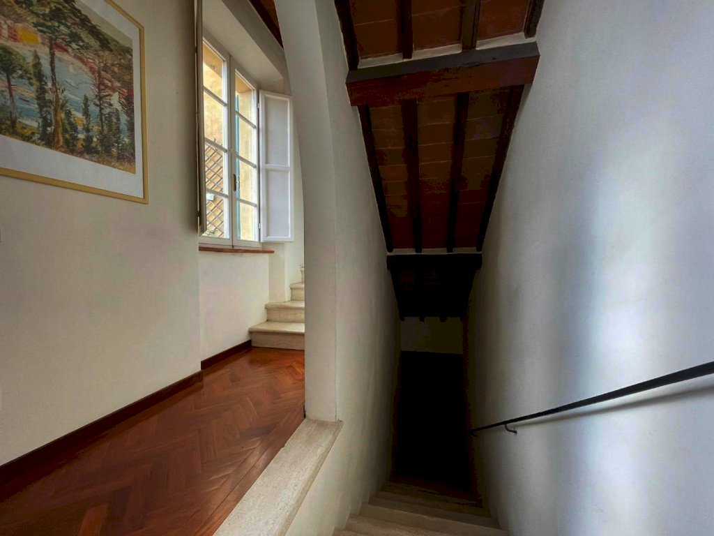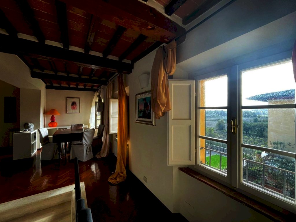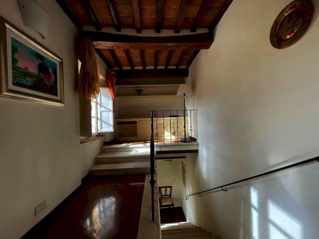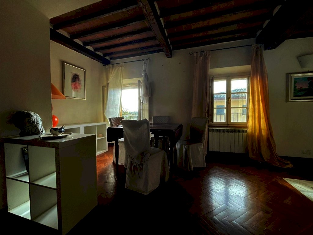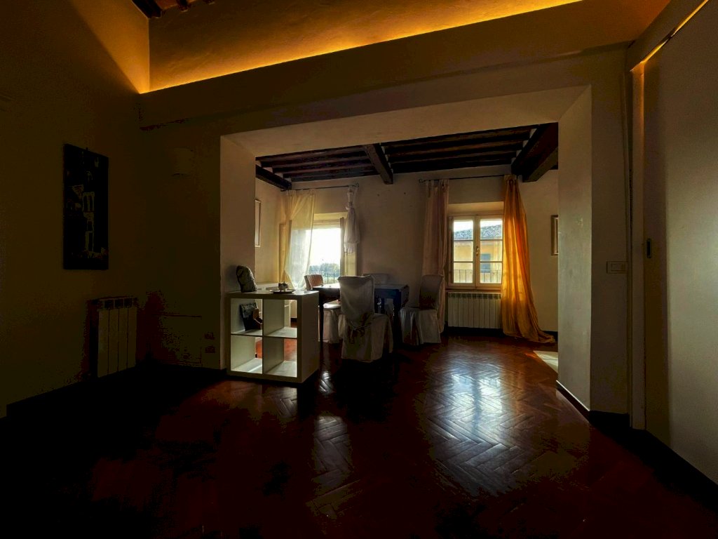 Nel borgo di Monteliscai, a 5 km da Siena, in un contesto di pregio, appartamento di mq 135 disposto su tre livelli posto al piano terra rialzato e composto al piano di ingresso da ampio soggiorno con camino, cucinotto. al piano superiore piccolo soppalco ideale per uno studio; all'ultimo livello, cucina abitabile, sala da pranzo, ampio bagno con finestra e tre camere matrimoniali . Finiture di pregio e fantastica vista sul parco all'inglese. L'edificio principale รจ a tre piani e l'ingresso principale ha tre archi, delle scale per raggiungere il portone d'ingresso, un balcone e un grande orologio. Decorazioni in ferro battuto ed una campana che impreziosisce la facciata.
