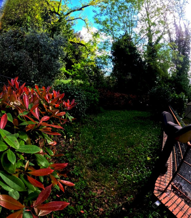 Due terrazzi con tende elettriche, due giardini di proprietà con accesso diretto dal soggiorno e dal balcone della sala da pranzo , una cantina ed un garage completano la proprietà.