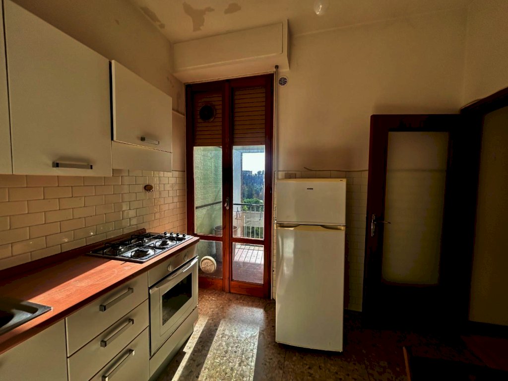ZONA PETRICCIO ALTO - appartamento di mq. 93 posto al piano quarto (ascensore) composto da ampio ingresso, ripostiglio, cucina con piccolo terrazzino di mq. 1 , soggiorno con terrazzo di mq. 5, due camere matrimoniali e bagno finestrato. Questo immobile è abitabile. L'esposizione Sud-Ovest garantisce luminosità e una piacevole vista. L'appartamento è dotato di ascensore e presenta un ingresso tradizionale. L'appartamento è dotato di impianto di riscaldamento condominiale a gas metano con i sub-contatori e termovalvola ad ogni radiatore. Completa la proprietà un piccolo garage di mq. 13. Le spese condominiali ammontano a circa 100 Euro mensili. Classe energetica: G indice 150,00 kWh/m2 anno.