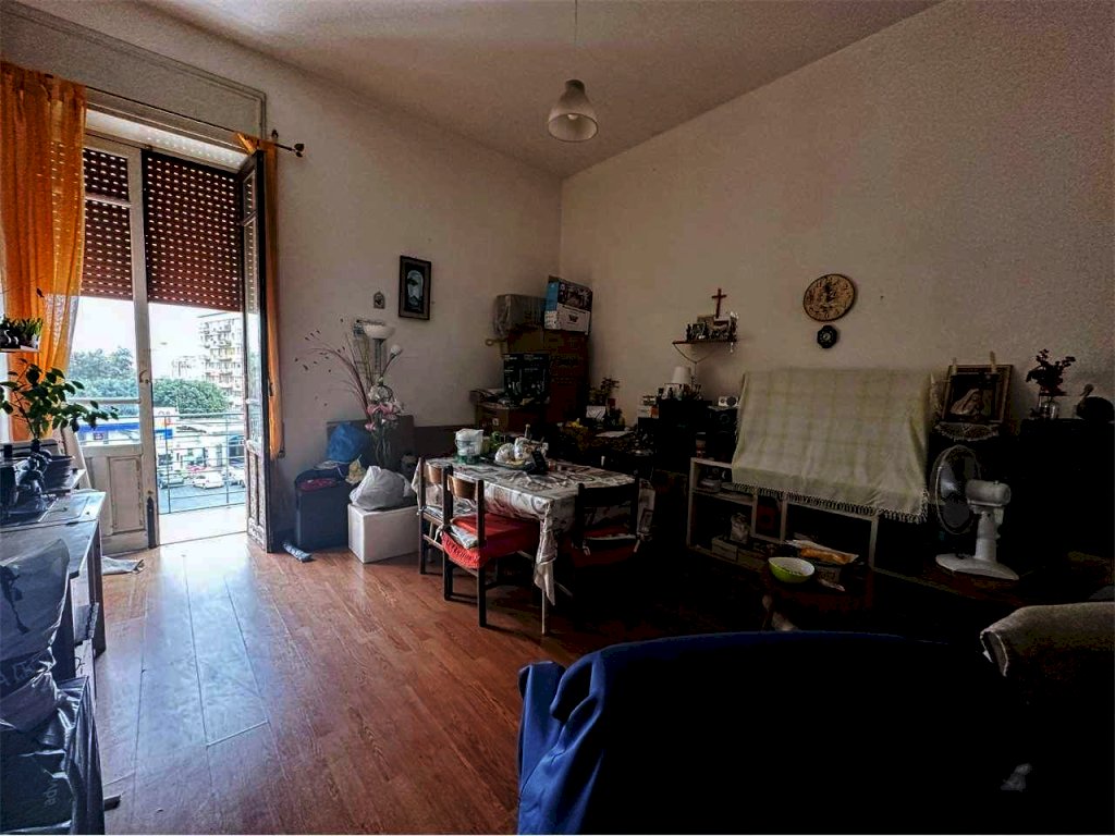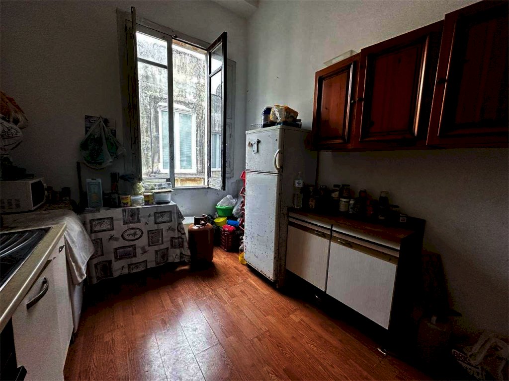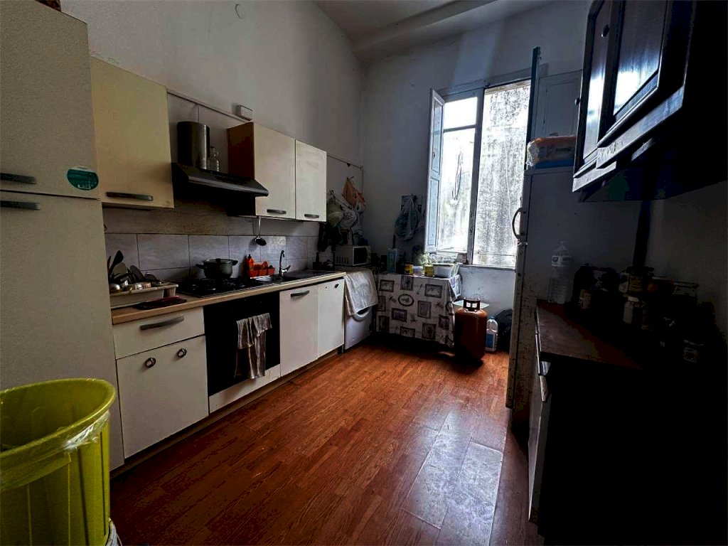 La superficie di mq. 122, è così distribuita, l'ingresso, le due ampie camere con vista sulla piazza e sul magnifico Corso Umberto, la camera da letto, la cucina e il bagno.
