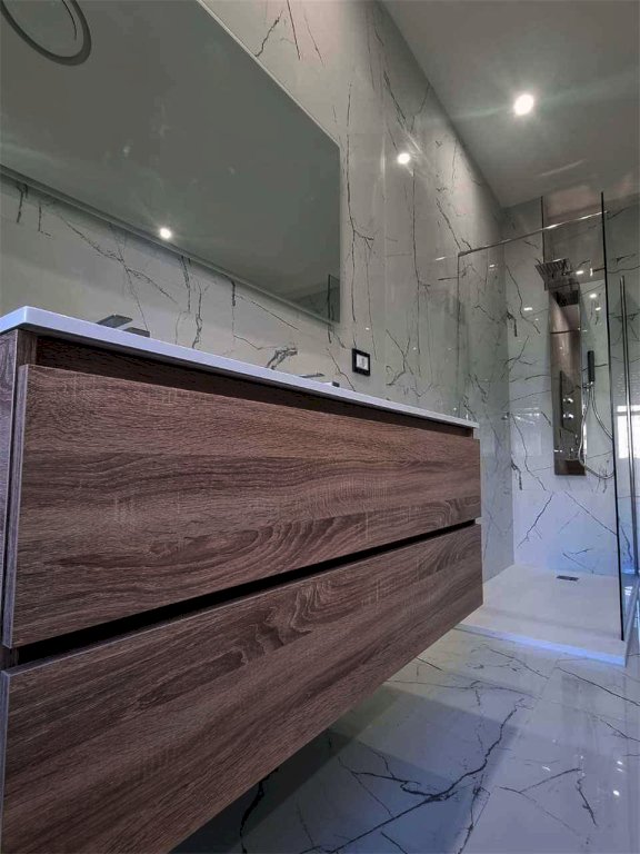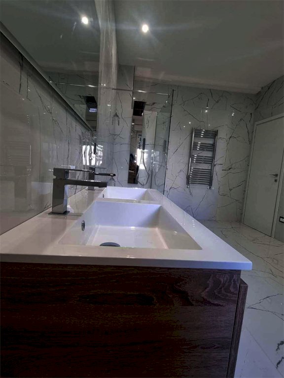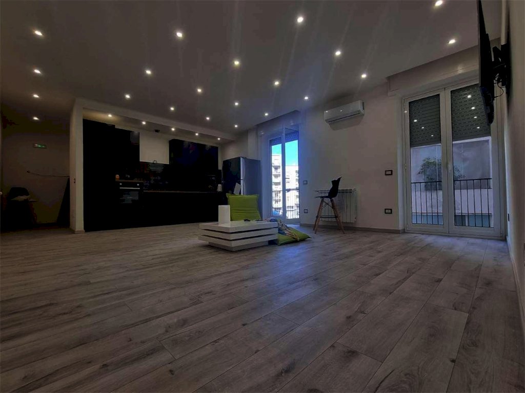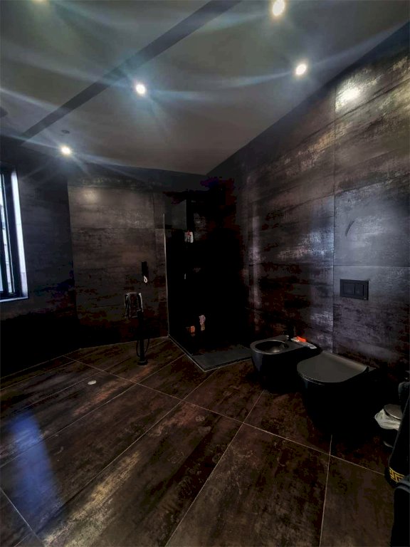 L'immobile oggetto di recente ristrutturazione totale, presenta un ampia e luminosa zona living/cucina open space, tre comode camere da letto, un ripostiglio e due bagni elegantemente rifinita con colori completamente opposti tra loro , uno con marmo pregiato di colore chiaro e relativi sanitari bianchi con box doccia, l'altro con predominanza di colori scuri compresi sanitari , dotato sia di box doccia che vasca Luxury (ancora in fase di consegna).