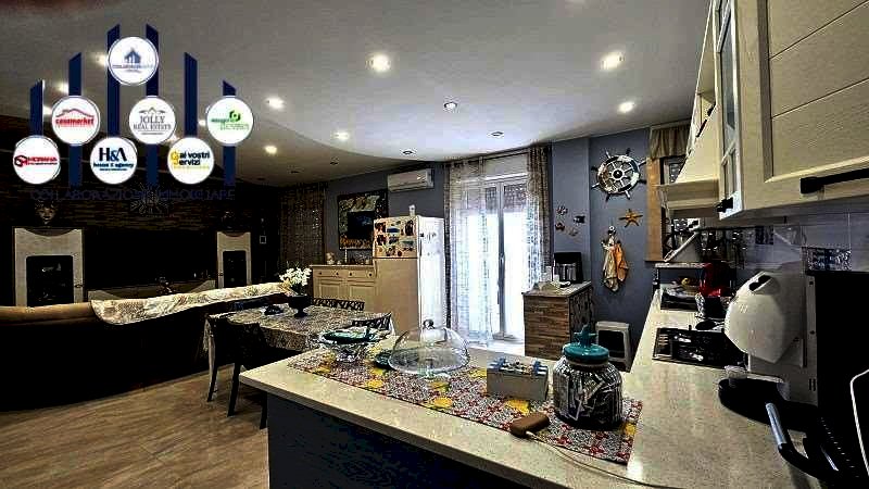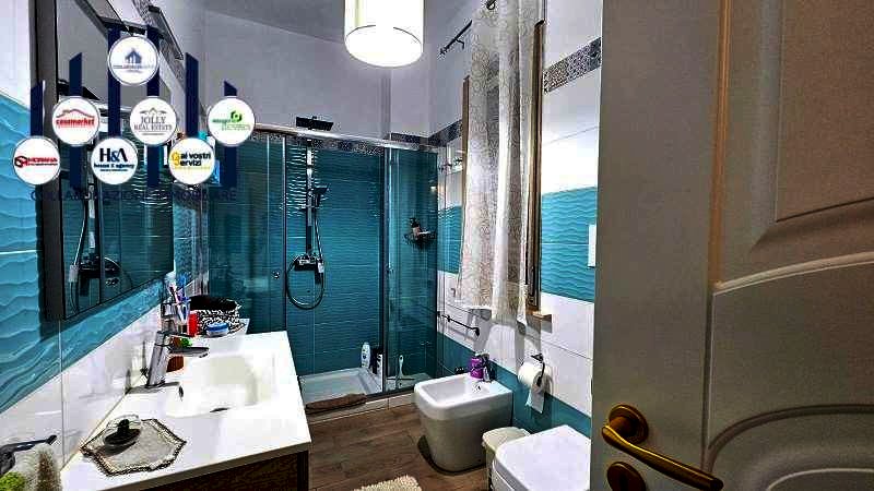 L'appartamento al suo interno e' composto da un ingresso su ampia zona living con cucina a vista e accesso al balcone ;la zona notte vanta due camere da letto di cui una con bagno in camera, cameretta, bagno con doccia e ripostiglio.