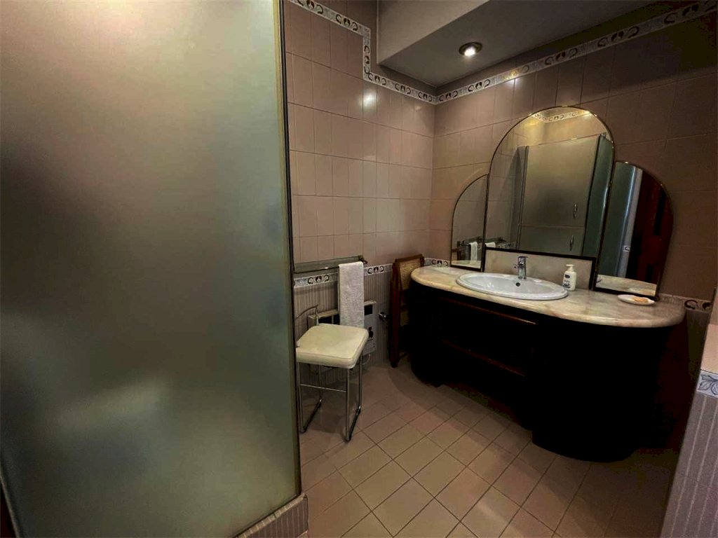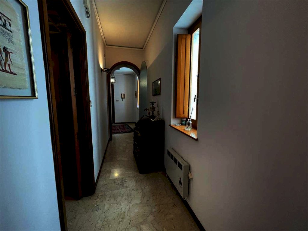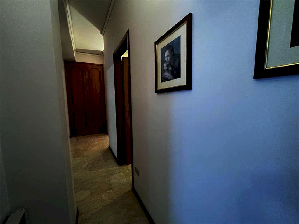 La casa ha ingresso, salone doppio con due accessi al balcone, corridoio con finestra, grande bagno con finestra (oltre a vasca e doccia), ampio vano aperto con balcone e composto da salotto e sala da pranzo (con annesso cucinino verandato, che affaccia sul balcone comune al salone), camera da letto con finestra e balcone, camera matrimoniale con finestra e balcone, due piccoli ripostigli, secondo corridoio, studio con balcone e finestra, secondo bagno con doccia e grande finestra, camera di passaggio con accesso al secondo grande balcone (adibita a studio), terzo corridoio, due ulteriori grandi stanze aperte con accesso al secondo grande balcone (anche queste adibite a studio), secondo ingresso alla casa.