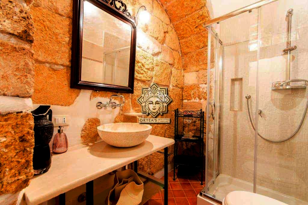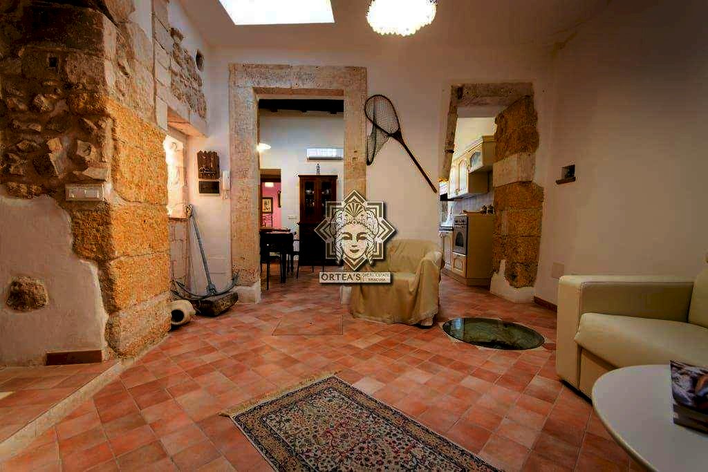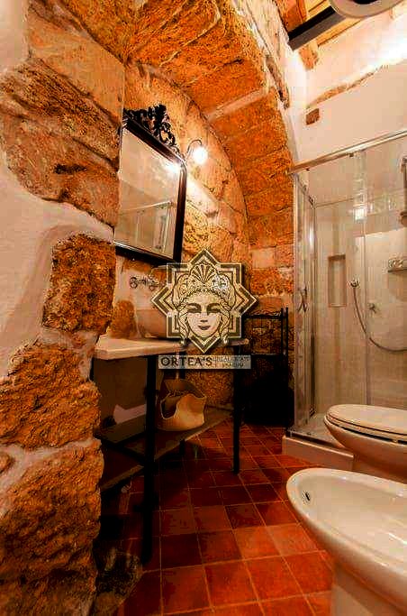 Questa dimora con più di quattro locali è stata recentemente ristrutturata con cura dei dettagli e si trova al piano terra di un edificio d'epoca ottocentesca che dispone di una ampia zona living con una parte del pavimento in vetro calpestabile dal quale è possibile ammirare parte di antiche fondamenta di epoca greco romana, due camere da letto e due locali bagno con doccia. In questo appartamento nei pressi della porta spagnola della marina nel rinnovamento si è cercato di recuperare il più possibile le caratteristiche architettoniche delle case tipiche del centro storico con i bellissimi archi e i muri in pietra.