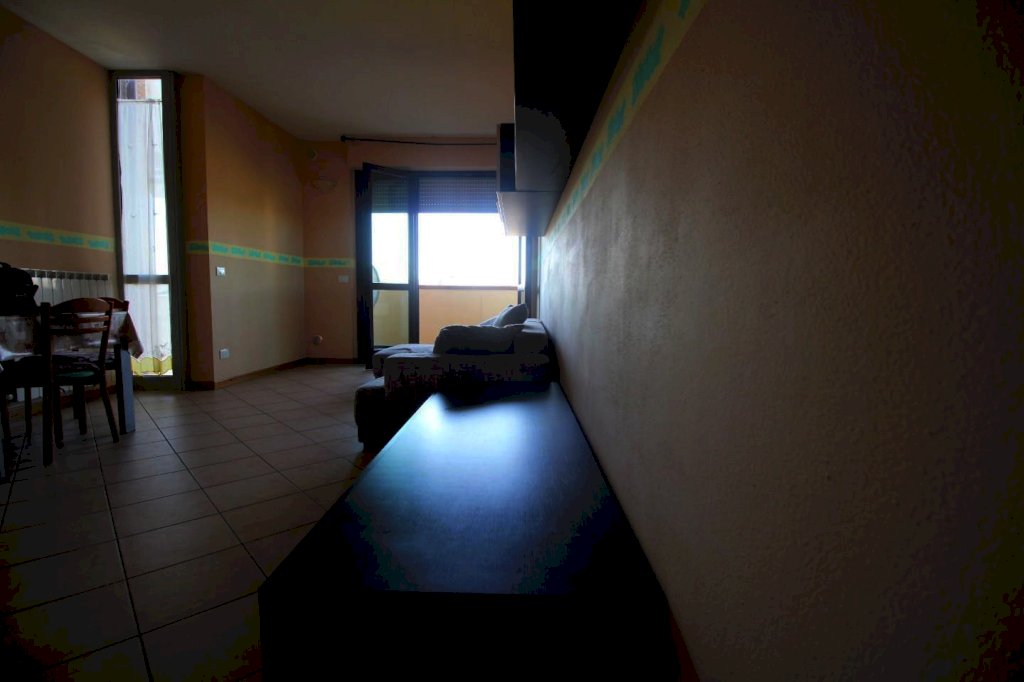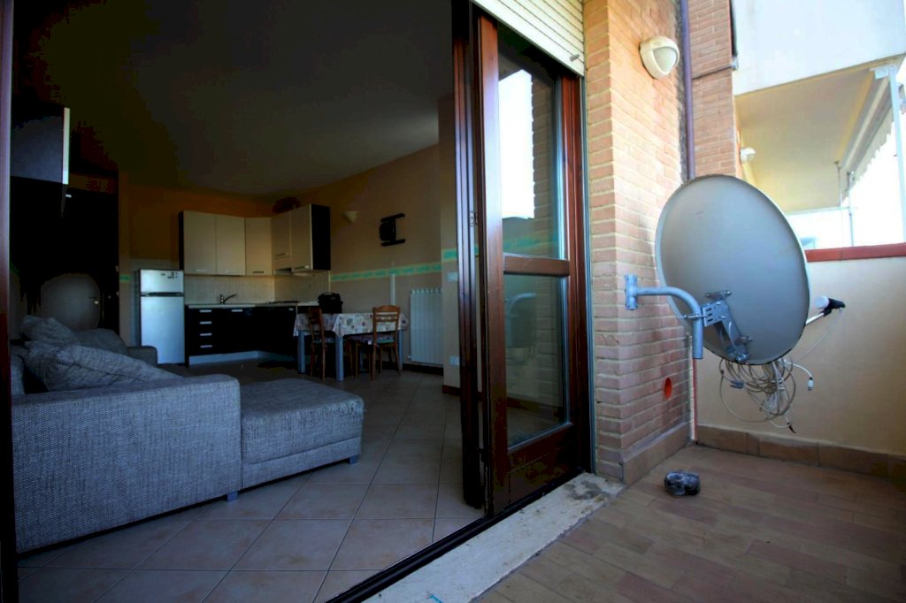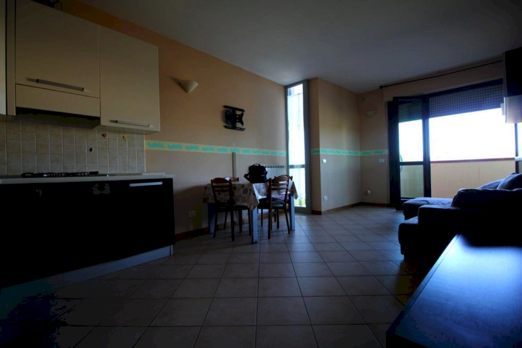 Appartamento di recente costruzione posto al primo piano di mq 50 e composto da ingresso, ampio soggiorno con angolo cottura e accesso a terrazzo panoramico, bagno e camera matrimoniale. Garage. L'appartamento รจ molto luminoso e ubicato vicino ai maggiori servizi. Buone condizioni. Posto auto condominiale. Attualmente locata.