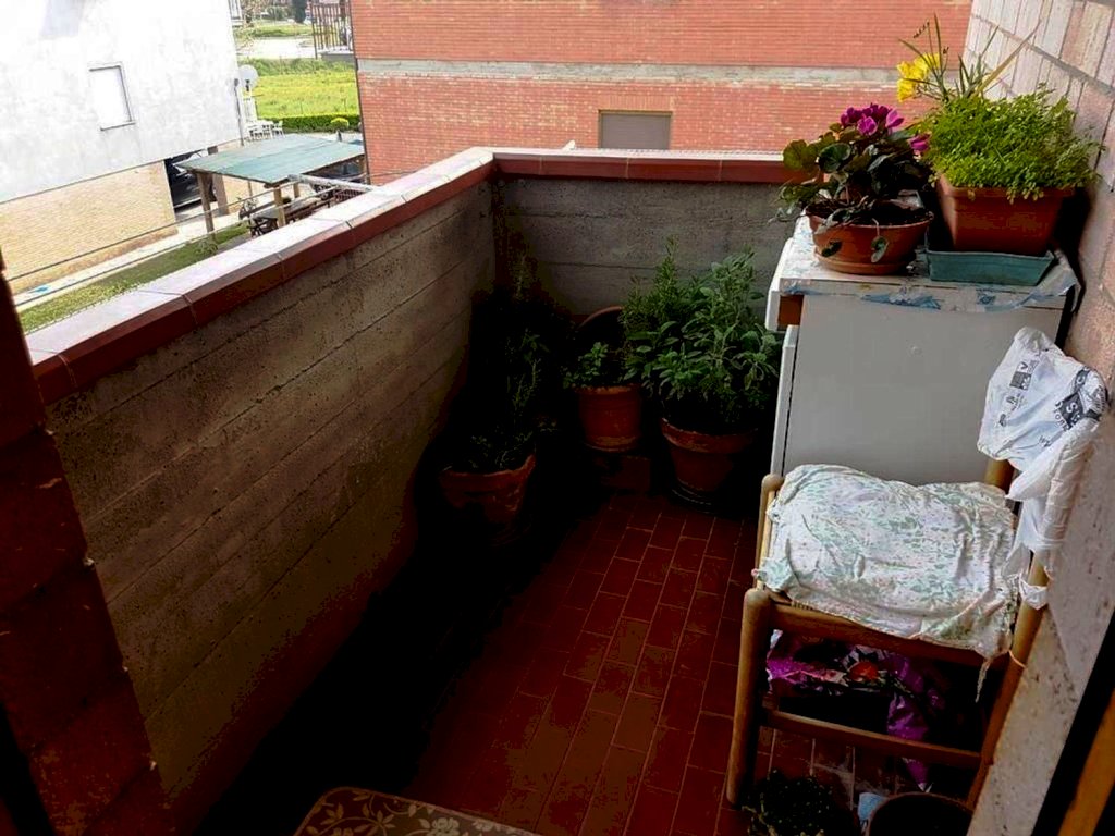 Rosia al secondo piano di piccolo condominio vendesi appartamento di 80 metri quadri composto da ingresso, cucinotto, soggiorno, due camere, disimpegno e bagno, oltre balcone e veranda. Completa la proprietà un gargae al pinao terreno. L' immobile è in buone condizioni, nesscessita solo di piccoli lavori di ammodernamento. Luminoso ben esposto ideale per famiglie.