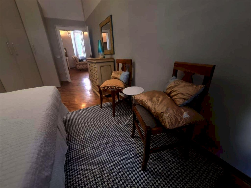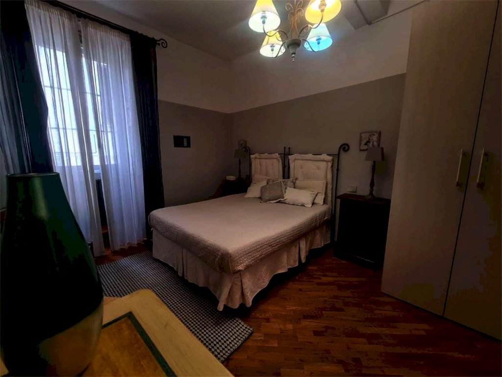 In palazzo signorile del centro storico, fuori dalla zona a traffico limitato, proponiamo in vendita un luminoso appartamento posto al piano primo.L'immobile è internamente composto da un ingresso con disimpegno, un salotto/soggiorno, una zona pranzo/living con camino, una cucina semi abitabie con camino, una camera matrimoniale con cabina armadio, e un bagno attualmente con vasca( da attualizzare). Lo stato generale dell'immobile è molto buono e nel prezzo richiesto è incluso l'arredamento.