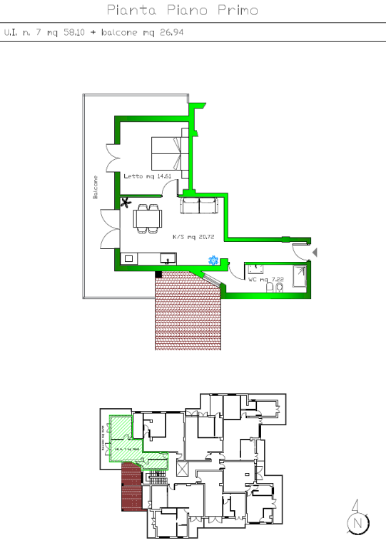 Al primo piano l'appartamento n. 7 di 67 mq ed è composto da: