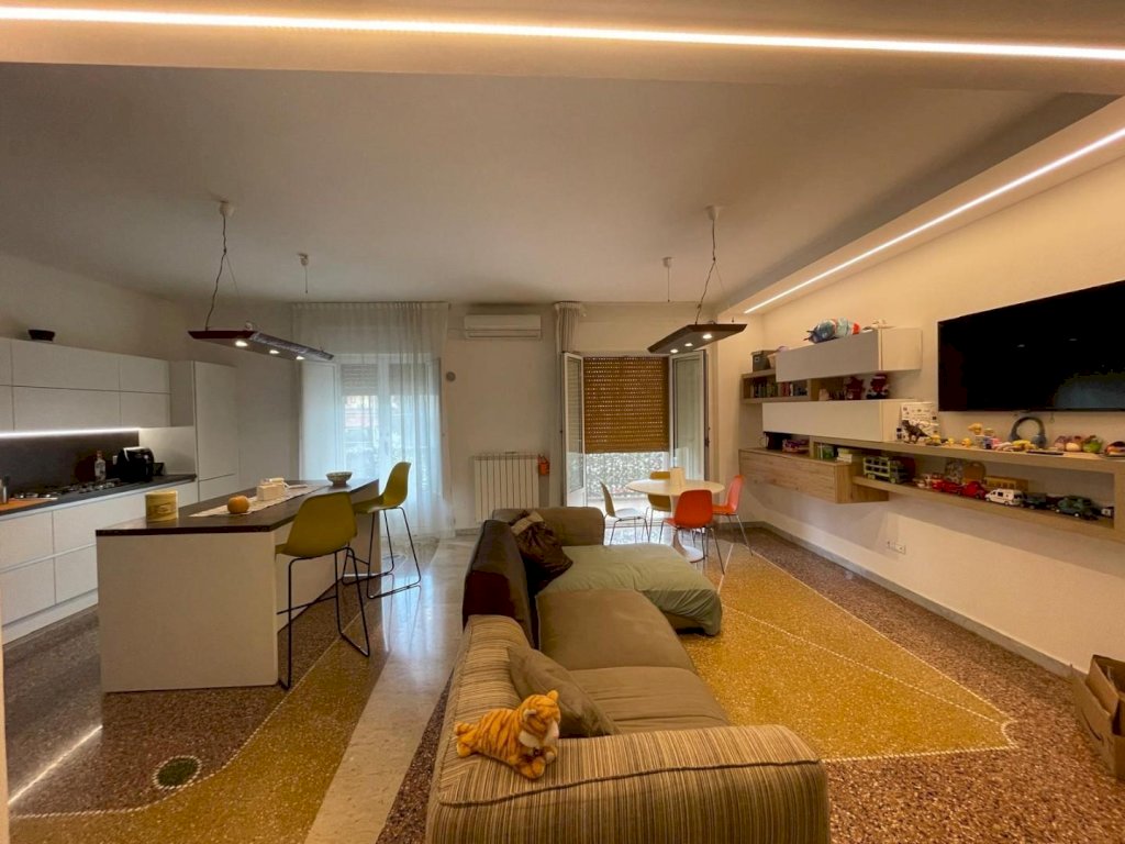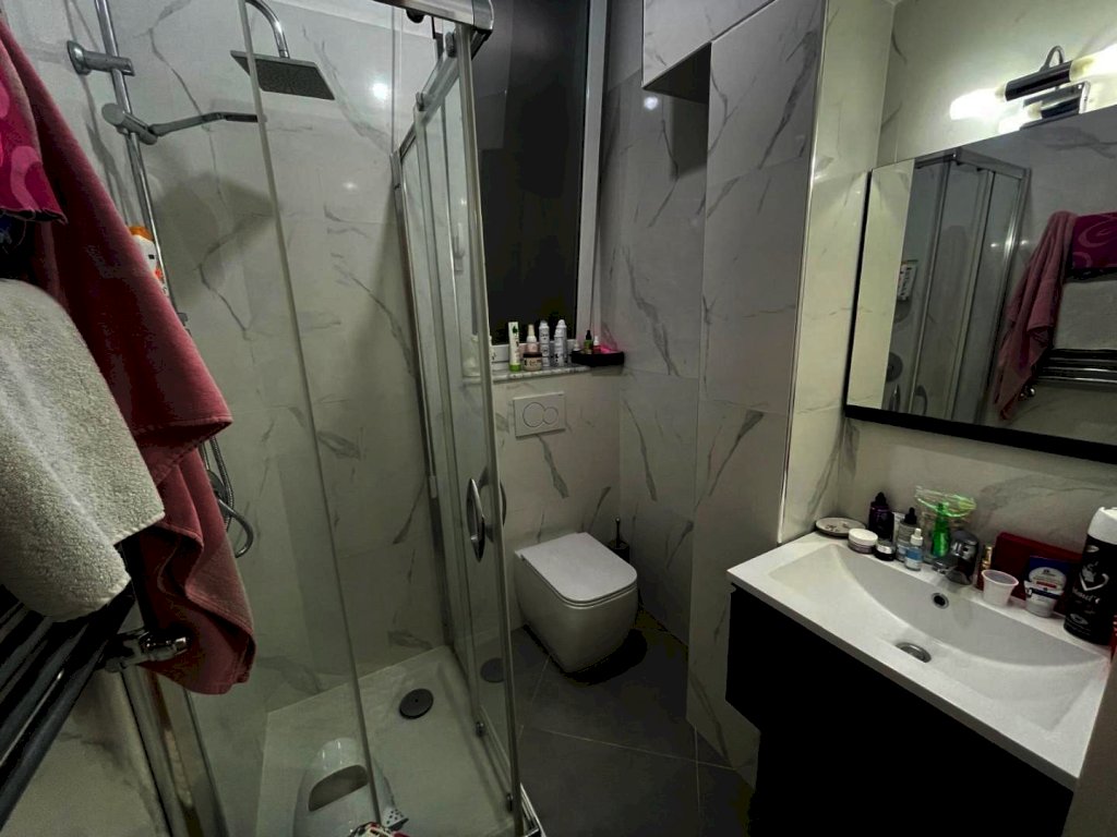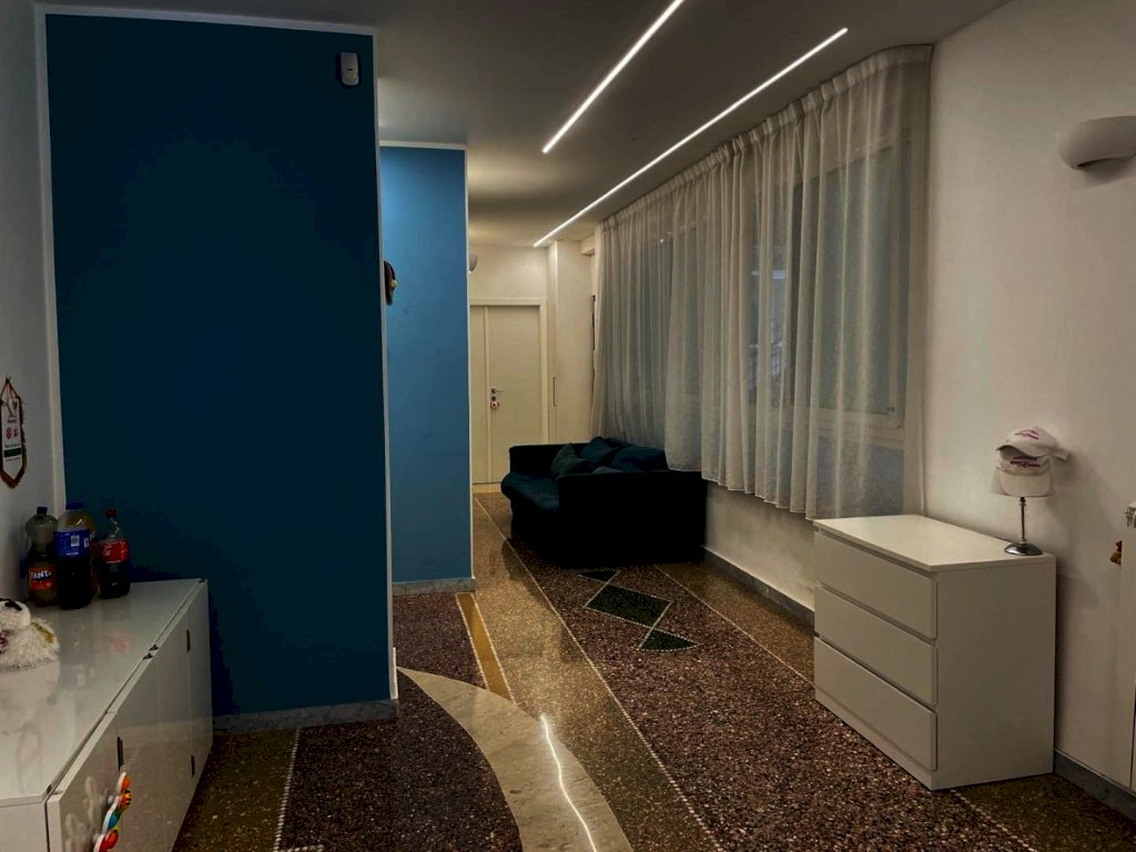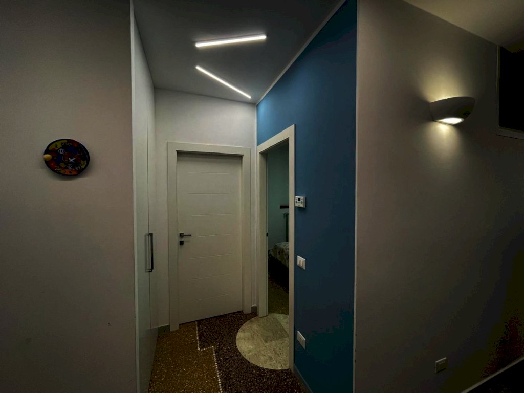 immobile ristrutturato situato al primo di un edificio di 8 piani composto da ampio corridoio, tre camere da letto soggiorno open-space con angolo cottura due bagni con doccia di cui uno con vano lavanderia, due armadi a muro e una cabina armadio ampia. l'esposizione esterna con due balconi a sud e due affacci interni split caldo freddo, illuminazione a led pavimento mosaico originale lucidato. Il piano cottura e incluso nel costo dell'immobile.
