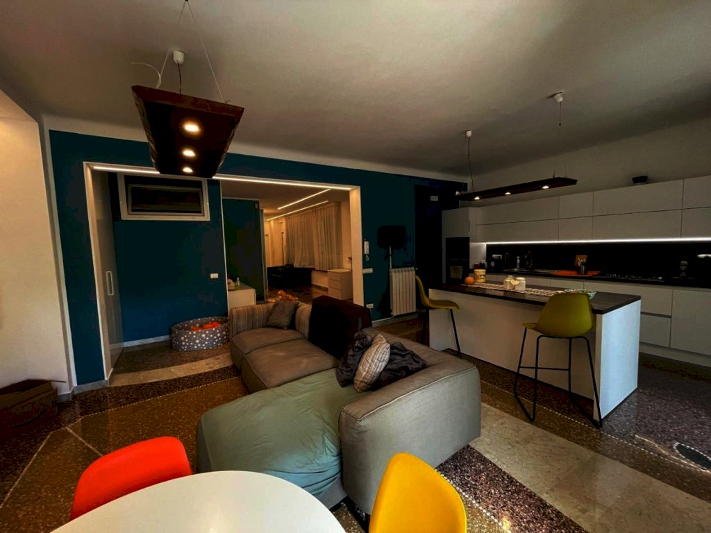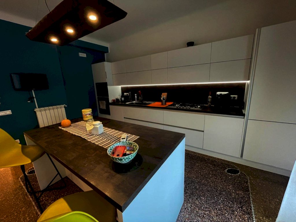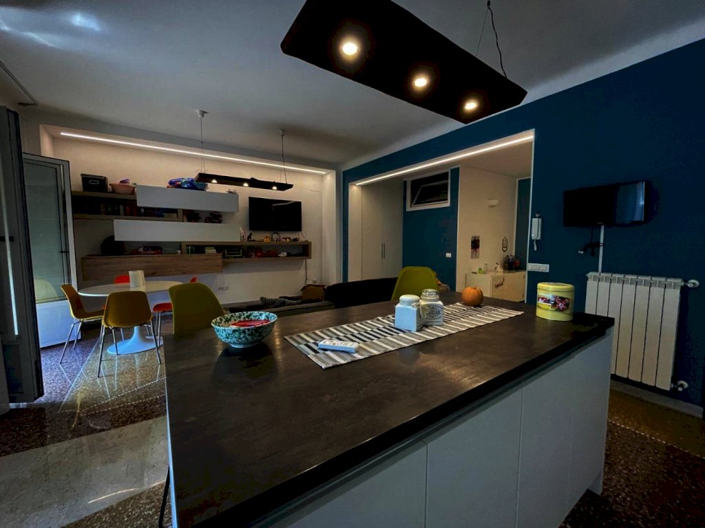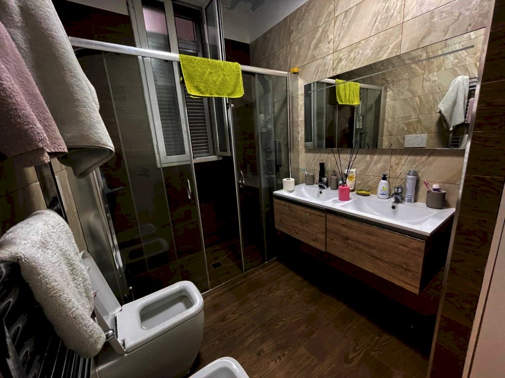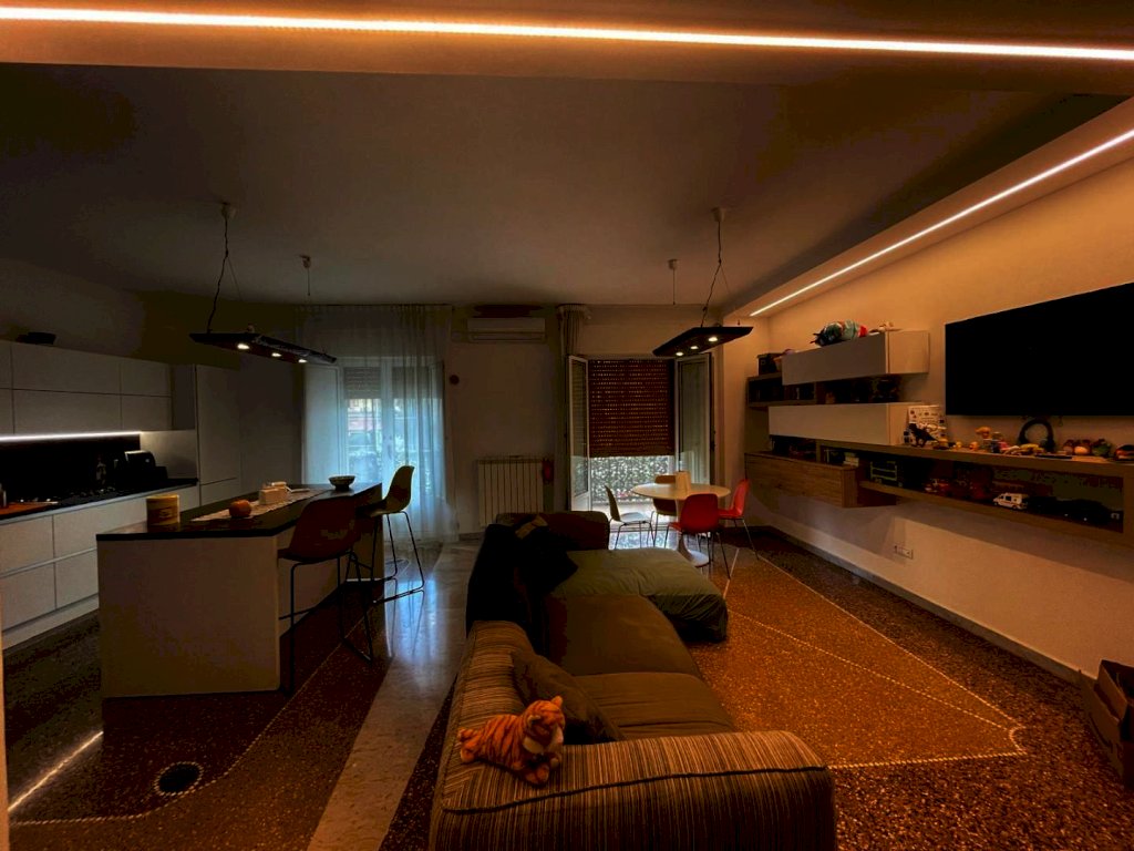 immobile ristrutturato situato al primo di un edificio di 8 piani composto da ampio corridoio, tre camere da letto soggiorno open-space con angolo cottura due bagni con doccia di cui uno con vano lavanderia, due armadi a muro e una cabina armadio ampia. l'esposizione esterna con due balconi a sud e due affacci interni split caldo freddo, illuminazione a led pavimento mosaico originale lucidato. Il piano cottura e incluso nel costo dell'immobile.