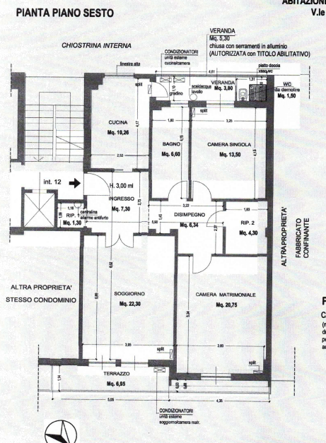 Si compone di: ingresso, soggiorno con terrazza, cucina abitabile con una veranda chiusa con infissi, adibita a zona lavatoio ed occupata nella parte finale da un piccolo servizio igienico, due camere da letto, un disimpegno, due ripostigli e un ampio servizio igienico con finestra; superficie netta complessiva pari a circa 110,00 mq.