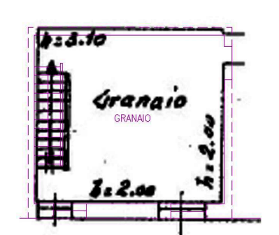 L'unità si sviluppa su più livelli: al piano terra è presente la cucina e un servizio igienico ricavato nel sottoscala; al piano primo si trova una camera con disimpegno di collegamento; al piano secondo è presente il granaio.