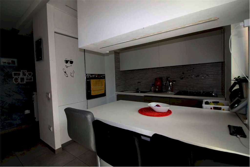 L'unità immobiliare, disponibile dalla stipula, è disposta su un solo livello, al piano terzo raggiungibile con ascensore e gode di due affacci molto lucenti. Essa è composta da, ingresso, soggiorno, cucina a vista con angolo pranzo, due camere da letto, due bagni, balcone e un box auto. L'immobile dispone anche di un vano tecnico adibito a lavanderia. Buone rifiniture, immobile già pronto per abitarci. Riscaldamento autonomo alimentato a gas metano, spese condominiali irrisorie.Trattasi di immobile con piena proprietà.